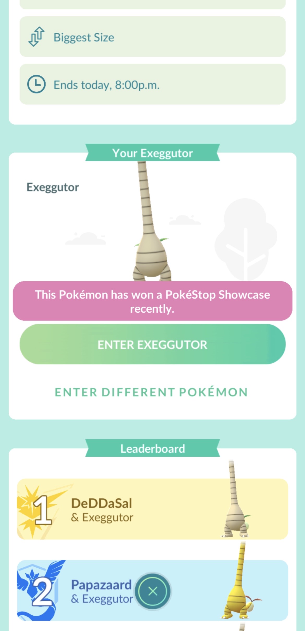 >>59222291My local showcase has been "who has the biggest Exeggute" for the past month (it's not me), I wish they were more varied or something.Different locations, different metrics tracked.