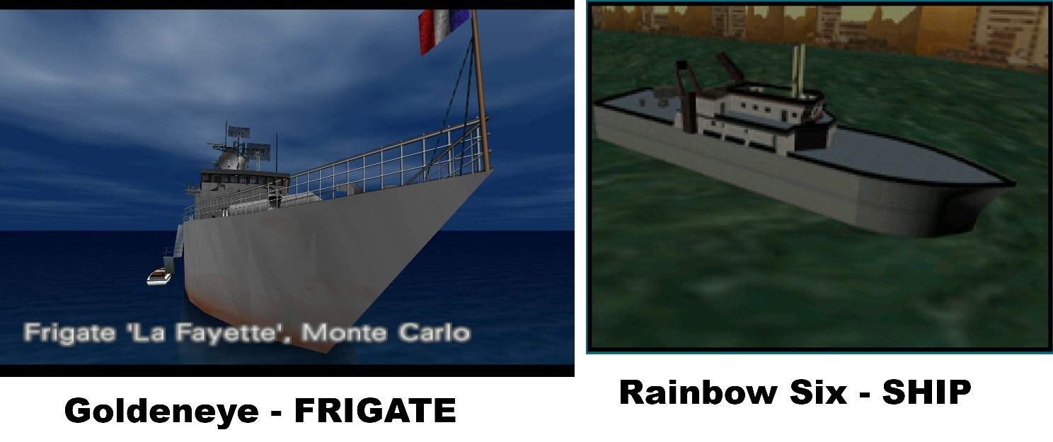 >>12260049>looking that badIn-game it doesn't. That's a CGI render specifically for the mission thumbnail.https://www.youtube.com/watch?v=MZJbFyQ2DNMIn-game, the scale is a lot more impressive than Goldeneye's, and there's a lot more polygon work on the interior, and in the details of the ship itself, where-as most of the detail is baked-in on the textures in Goldeneye.I would say they both adequately do what they were meant to do; having tight pacing and action in Goldeneye, and being a realistic and tense setting in Rainbow Six.Graphically, I would have to say Rainbow Six is more impressive, but Goldeneye looks nicer.https://www.youtube.com/watch?v=pU9aqR0Hiekhttps://www.youtube.com/watch?v=MZJbFyQ2DNM