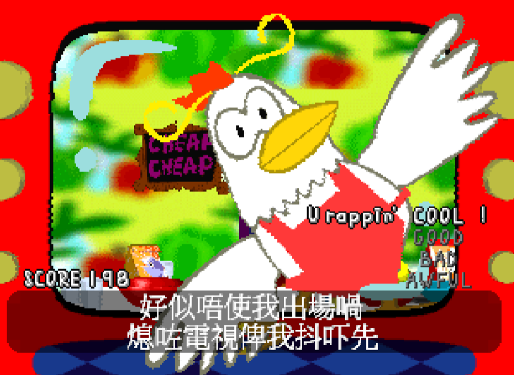 I don't think there is a single bad song in the Parappa series, including Lammy. Maybe Parappa's Teriyaki, but even the cutscene score and the Bad/Awful variants of Parappa 2's tracks. I know the meme>the true fan appreciates the penis SFX of the Bad versionsbut those sound effects were absolutely written fundamentally with the songs. Those versions paint the musical tone of "fucking it up" perfectly, and little details pertinent to each song and the context of the level are present in each track>Romantic Karate has fart, spitting, and general goofy sounds to evoke the antithesis to smooth and romantic>Mooseesha has the camera going off, buzzers, and sound effects of tripping/falling/flying off>in Noodles Can't Beat, Col Noodle takes over the song and really does give it an old school beat.I saw someone describe Awful Noodles like he's taking a victory lap from clowning on you and it's spot on. Not just the skill at composing 3+ games with good beats AND cinematic score, but there's depth to how the instruments and writing both together are an exponentially strong form of storytelling. Masaya Matsuura is a bloody legend