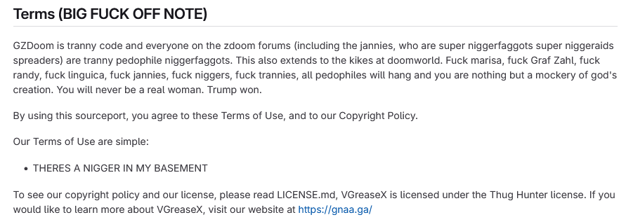 >>11682839>Actually cringe. For their sake I truly hope they aren't over the age of 20.They mentioned GNAA so they are probably close to 40It's unfortunate that they're going full bore in the opposite direction, because as a normal sane person because I find the rainbow flaggot troon shit plastered all over the zdoom discord to weird cultish cringe, but this is just as cringe and somehow even more retarded.