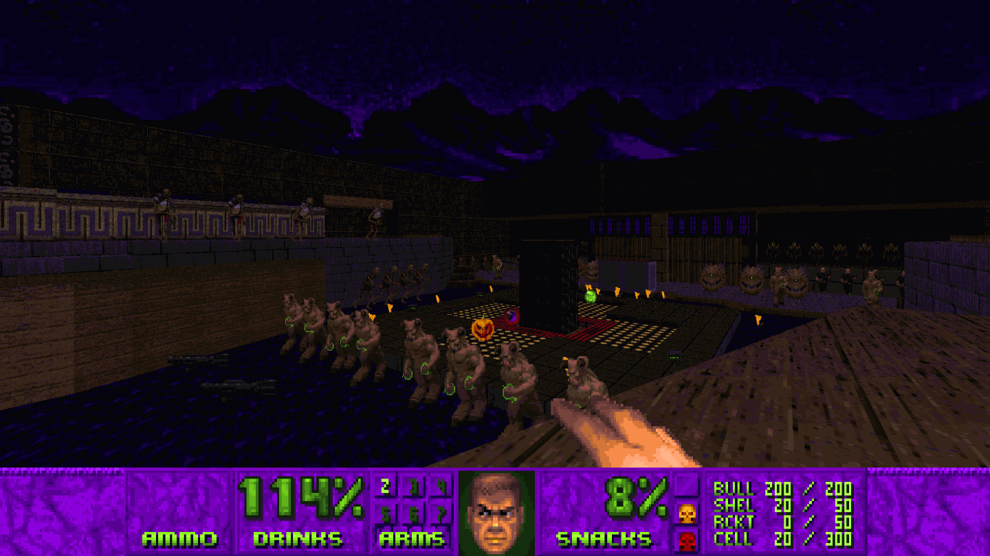 >>12073673>>> CLASSIC DOOM CHALLENGE <<<Record a UV-max run of Junkfood 4 - Map 16 "Castle Crablouse" by MortisCausaDonatio. The complevel is mbf21.Reply to this post with your demo & time.Download the wad here:https://www.doomworld.com/idgames/levels/doom2/Ports/megawads/junkfood4Current records here (the archive doesn't host the wad itself because it's too big, apparently):https://dsdarchive.com/wads/junkfood4?level=Map+16Example demo in 8:09https://files.catbox.moe/4yabjg.lmpPrevious thread winner: Wormwood IV - Map 05 UV-Max in 4:07! >>12069652Challenges haven't been very popular recently, but I'm usually playing doom and posting anyway, so it's not really a bother to keep making them. This map is one of the few from Junkfood4 that has pacing like a "normal" level so it seemed like a good choice. I also like map 10, but it's much harder. In general the junkfood series is low effort, and it shows, but I genuinely like many maps and the sprites/textures/custom palette from 4 especially. Whenever someone criticizes Ribbiks/Insane Gazebo/etc. as being slop, just remind them that this series exists.