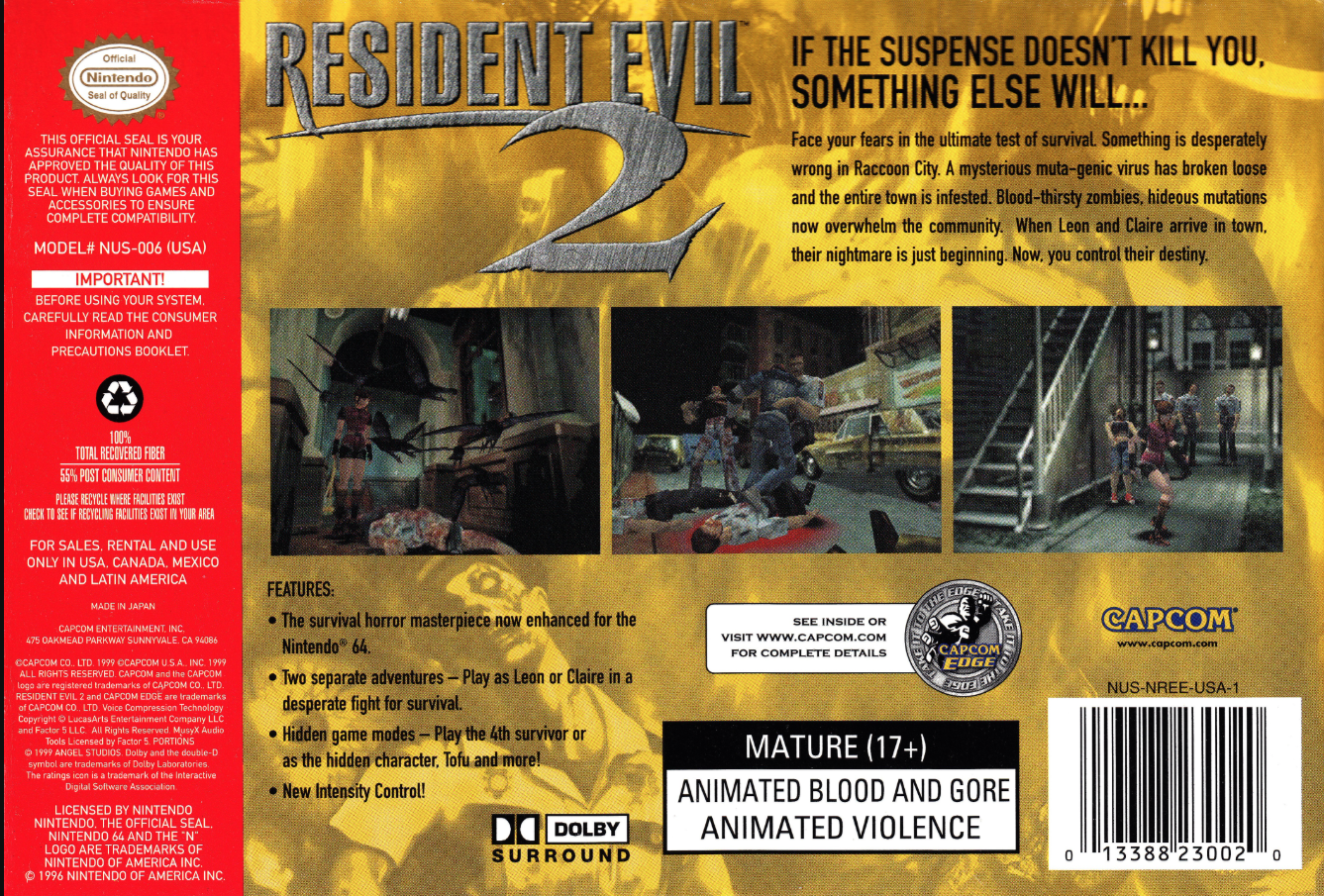 Honestly, one of the biggest upgrades the N64 version of Resident Evil 2 has over the others is the fact that it uses the MUSYX Factor 5 audio driver and has "3D" Doulby audio. It does give the sound effects in game some form of spacial awareness in relation to the camera. Majora's Mask also has some good Doulby audio.