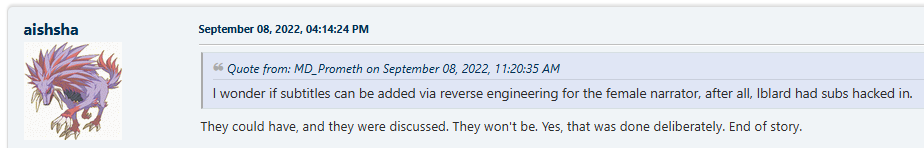 >creates translation in under a year for a game others strung people along for over a decade and never released anything>tells original translator to STFU when they bitched that he "stole" their free to use GPL code to do it>everyone takes new translator's side>adds an improvement hack to his translation... that is OPTIONALbased