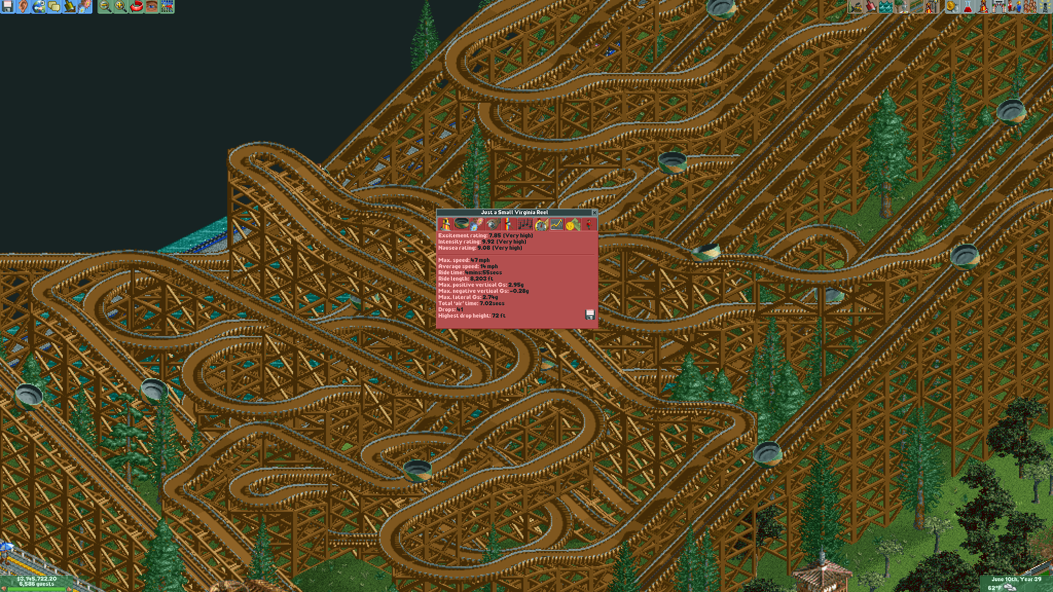 Going to take another break from it, but I got another coaster down after finishing the Wooden Wild Mouse. Only 4 to go and I can be rid of that park and they should be much easier than the Virgina Reel and Wooden Wild Mouse.