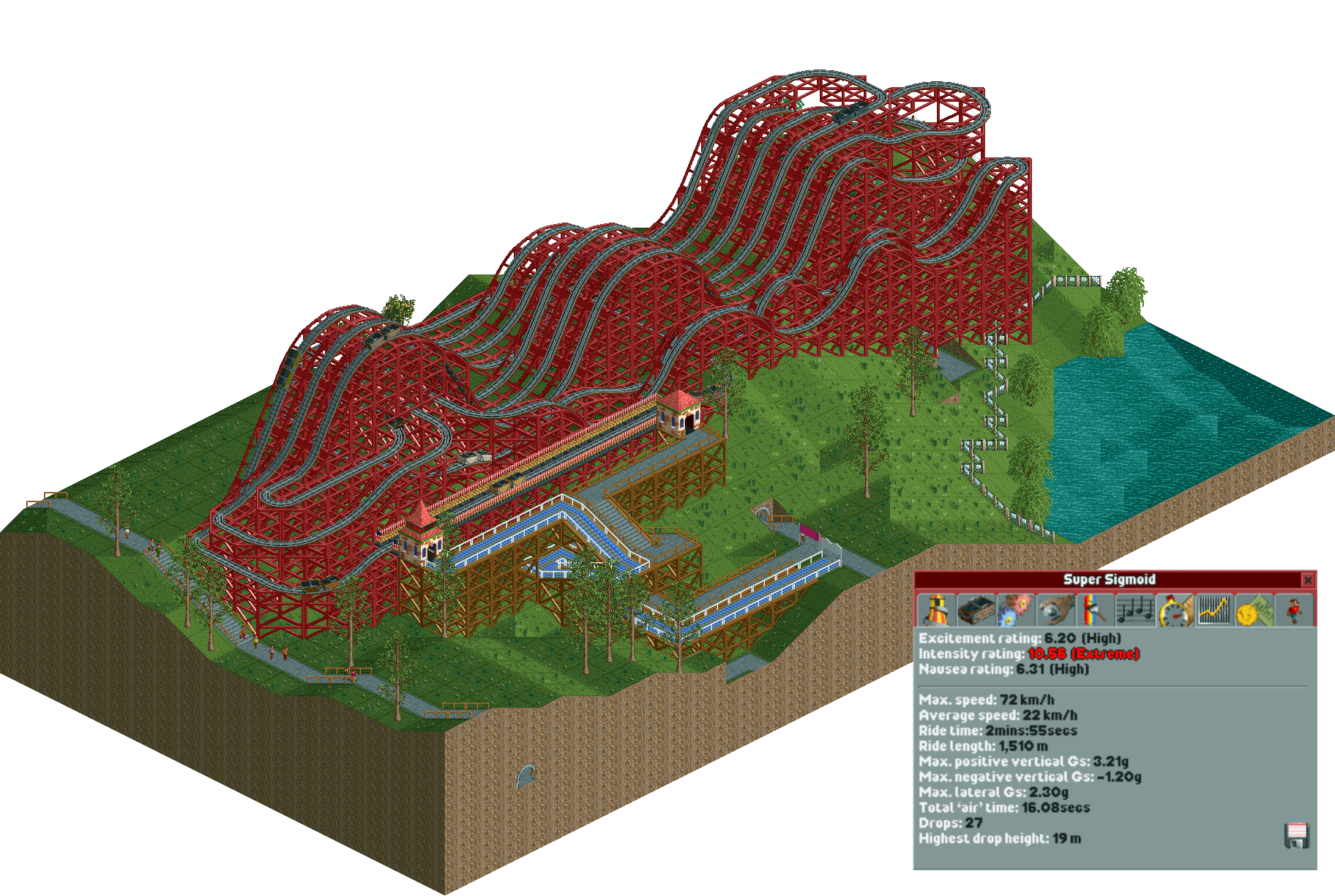 >>12117210Gonna be honest, this thing is shit to build with. I think the Gs above 2.5 and ride length severely hurt it. It's get 3.21 Gs from the tallest drop into the second hill. The only way I think you could conceivably do this is avoid any sharp turns except for pre-lift runs, use only wide bottom hills, and go to the next notch below the maximum height if using shallow-steep and steep-shallow lift sections, then giving it multiple lift hills