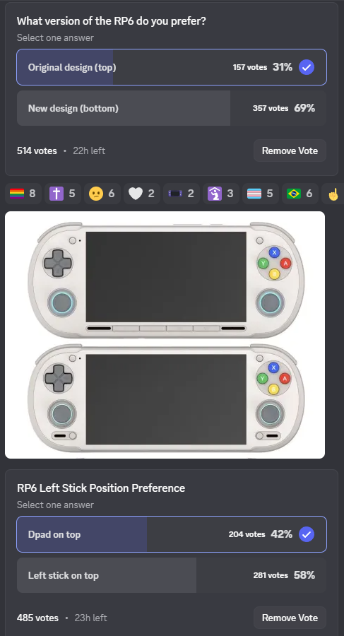 >mfw i vote dpad bottom, new design on twitter but dpad top, original design on Discord to attempt to get conflicting results in the final polls, thus increasing how retarded Retroid look