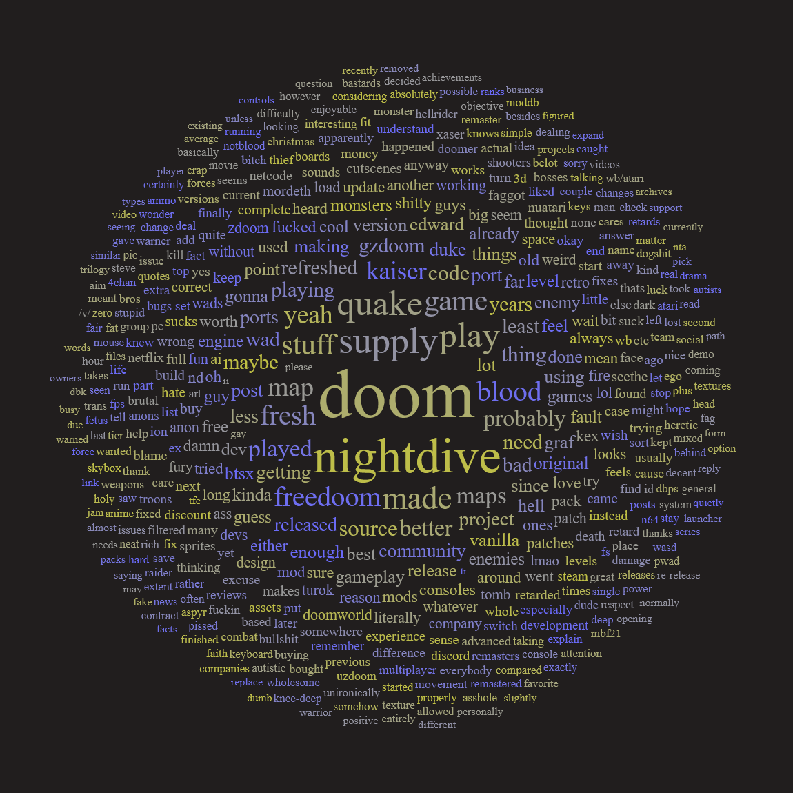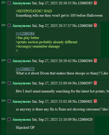 === CURRENT PROJECTS ===Duke It Out in /vr/Game : DN3D | Deadline : Jan 1st 2026Tile/Con pack: https://files.catbox.moe/thm4q7.zipRules: https://desuarchive.org/vr/post/11835634=== CURRENT RELEASES ===SUB MORTEM : A Dead Simple Halloween ProjectGame : Doom 2 | MBF21RC2: https://files.catbox.moe/bdpde1.zipDeep /vr/ied PotatoGame : Doom 2 | MBF21RC1: https://files.catbox.moe/3fml1f.zipNow on iDGames!https://www.doomworld.com/idgames/?id=21835=== NEWS ===[12-06] The Lost Episodes Of Doom MIDI Pack releasedhttps://www.doomworld.com/forum/topic/156327download lost episodes: https://dsdarchive.com/files/wads/doom/1738/jptr_v40.zip[12-06] Nugget Doom 4.5.0 releasedhttps://github.com/MrAlaux/Nugget-Doom/releases/tag/nugget-doom-4.5.0[12-04] The Second Annual Eggowardshttps://www.doomworld.com/forum/topic/156308-the-second-annual-eggowards/[12-04] Blood: Fresh Supply is delisted from Steam.https://steamdb.info/app/1010750/[12-04] OldUnreal community patches for UT2004invite-only testing should begin this monthhttps://github.com/OldUnreal/UT2004Patches/blob/main/ReleaseNotes.md[12-02] Skullverse II, a community project of 35 compact maps, released.https://www.doomworld.com/forum/topic/156277[12-01] Turok 1&2 updated. Engine updates, crossplay, bug fixes, and removes the old Acclaim introhttps://steamcommunity.com/games/405820/announcements/detail/491583942944621250https://steamcommunity.com/games/405830/announcements/detail/492709842851464086[12-01] Tomb Fetus has been released.https://www.youtube.com/watch?v=LXVsqIrM4wg [Embed][11-29] UZDoom 1.14.3 has had a full releasehttps://github.com/UZDoom/UZDoom/releases/tag/4.14.3[11-23] Helion v0.9.9.0 updatehttps://github.com/Helion-Engine/Helion/releases/latest=== PREVIOUS ===https://docs.google.com/document/d/1-vrTgPGmlLwdO5VHHCJMxmRD05E6XlNmqHIN8aykRG0TO SUBMIT NEWS, REPLY TO THIS POST