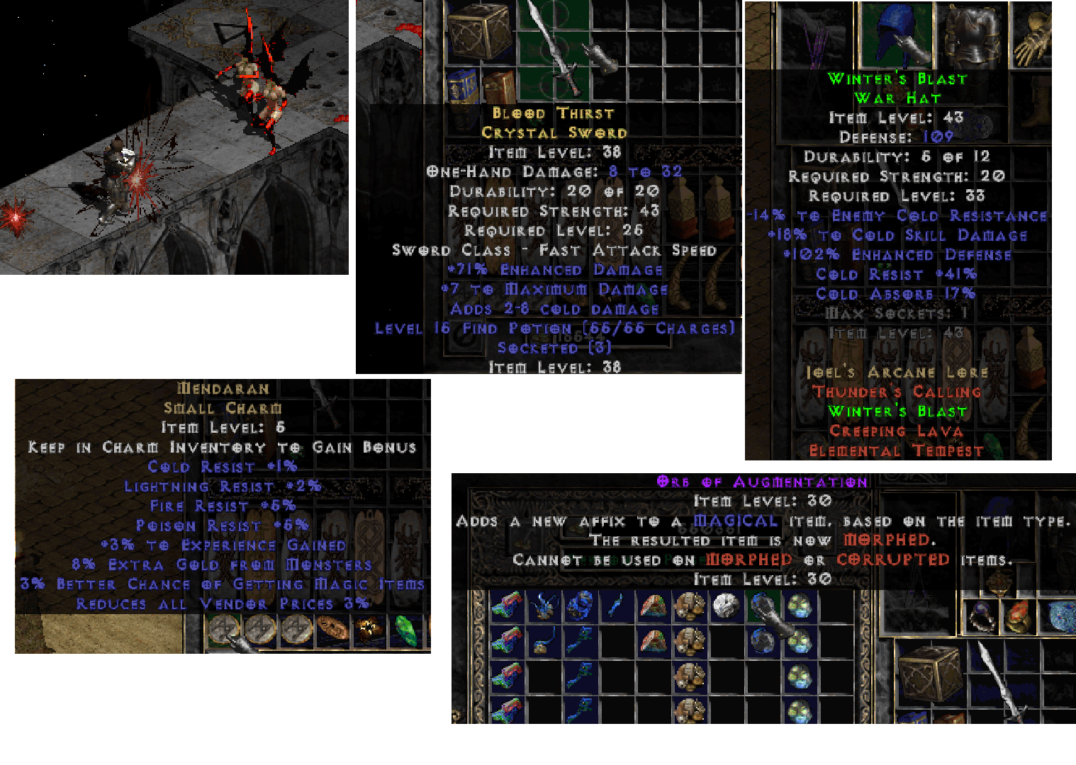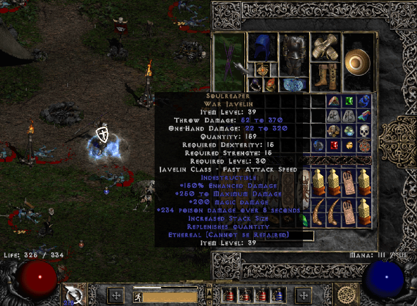 Classic Diablo 2 has some shitty items, holy shit.I woulda made a /CBG/ but I don't have the pastebin anymore but we can discuss blizzard games here if you want, i know the threads have been dead for awhile but i haven't stopped playing 1.05b and other classic blizard games.Current level is 31 and just been leveling in act 4 normal because nm sucks for exp specially when I keep getting raped by quill rats.