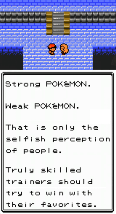 Inside of Pokemon, there are two wolves:One wolf wants you to have innocent fun catching and raising your own unique set of individual creatures and taking the good with the bad just like you would if you had them as real pets.The other wolf wants you to use those pets as party members in a combat-centric RPG with a competitive multiplayer component.These wolves cannot coexist, they will always maul each other and leave all players dissatisfied.