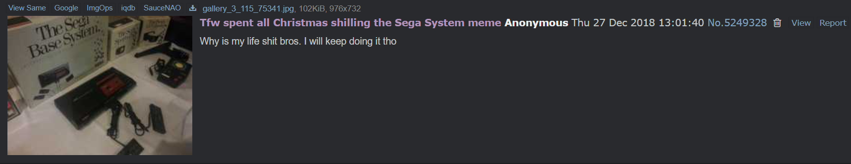 Don't bully sega spammer you know how hard Christmas time is for him