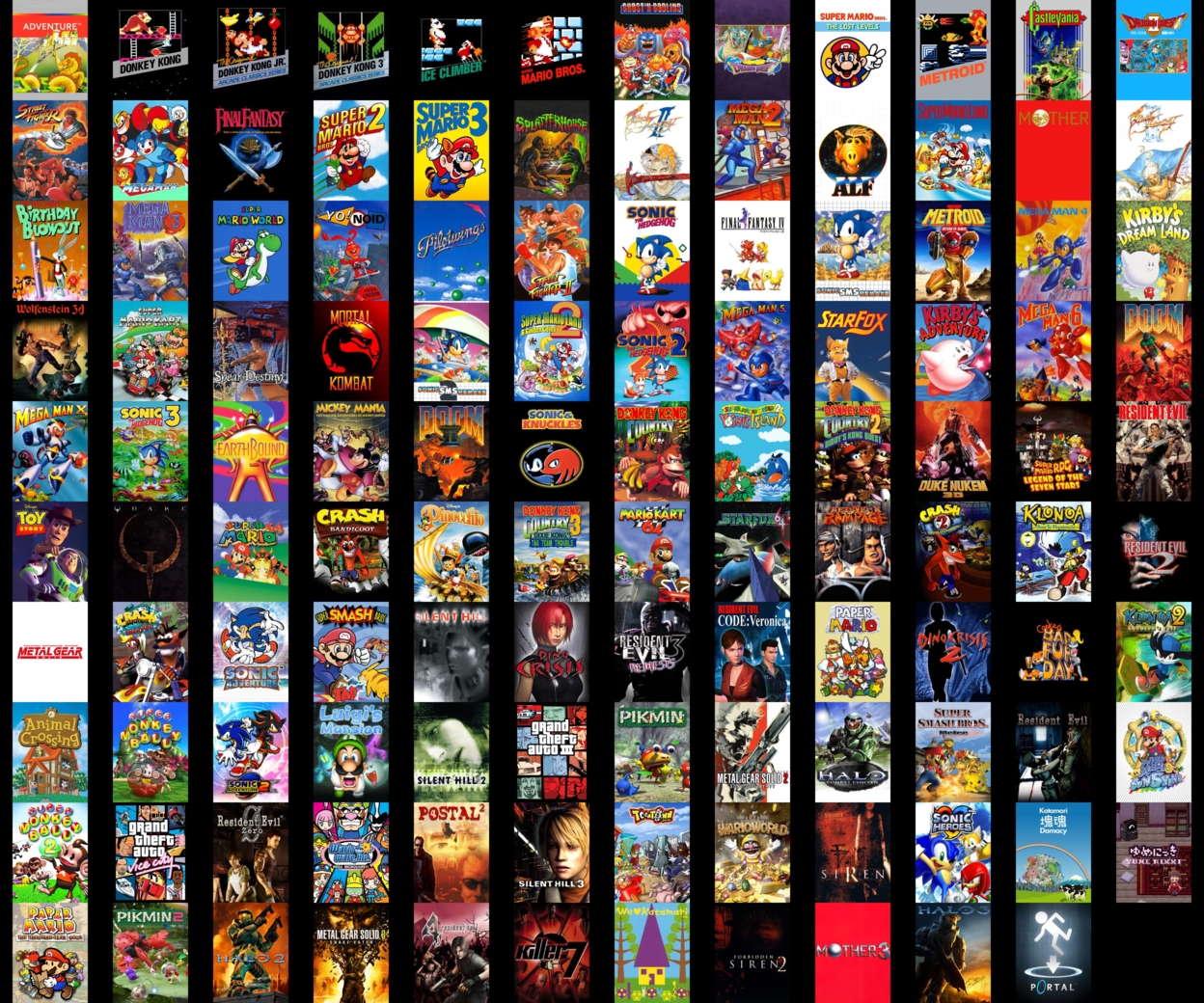>>12250710followed your 3x4 format, otherwise i could've gone for 6x4in order top to bottom nes, genesis, snes, and ps1but yeah good taste op.