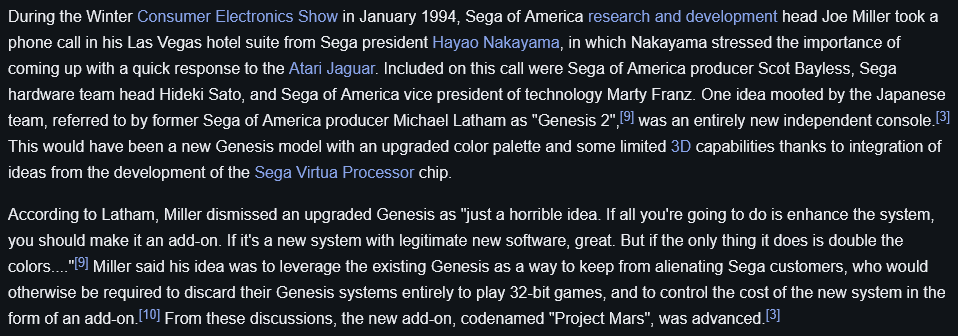 >>12256096>32XYou think that's bad? The 32X was born from SoJ originally wanting to release a standalone Genesis 2 as a response to the Atari Jaguar