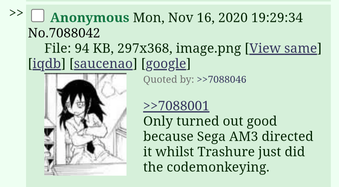 Reminder that, yes, it's him. Most of the shitposts on this board are still him.Prepare for segasystem spam again today
