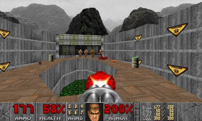 In DOOM you shoot guns