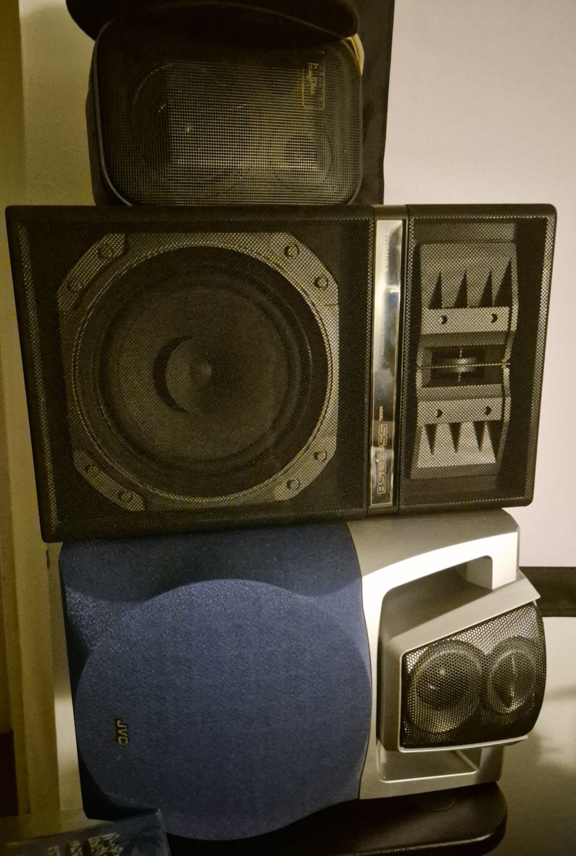 I just make a speaker stack with thrifted shelf speakers, good sound fidelity for the price.