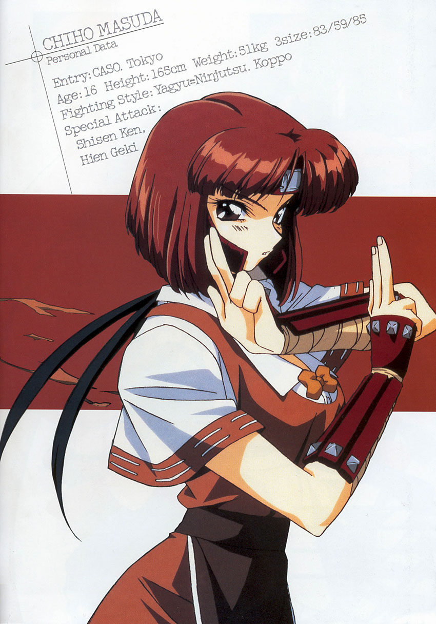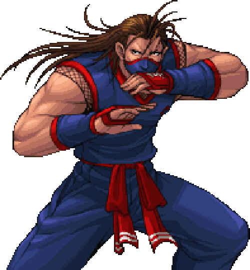 I wish this character had been developed more. In AoF he's a fairly stock side character but his design reminds me of Guy but slightly edgier. I think he would have done well to be used more, could have been the standard ninja of KoF, perhaps on a team with Billy and Yamazaki