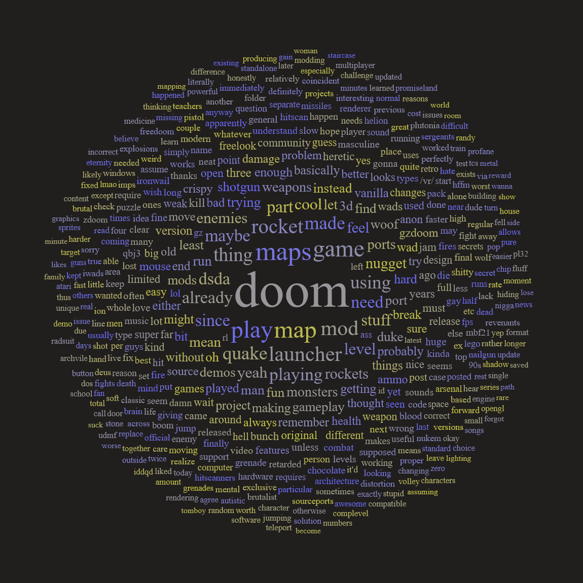 >>12304328Because it gets stale after 30 years. Doom would not have survived without mods. Even most of the people who primarily play vanilla occasionally open up GZDoom/Zandro to break things up. It takes a lethal level of autism to enjoy the exact same thing for three decades without it getting boring, especially with the everincreasing average number of enemies per map.