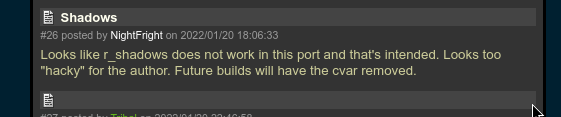>testing ironwail>always used r_shadows since glquake came was released back in what, 199somethingThese cunt devs are so annoying.