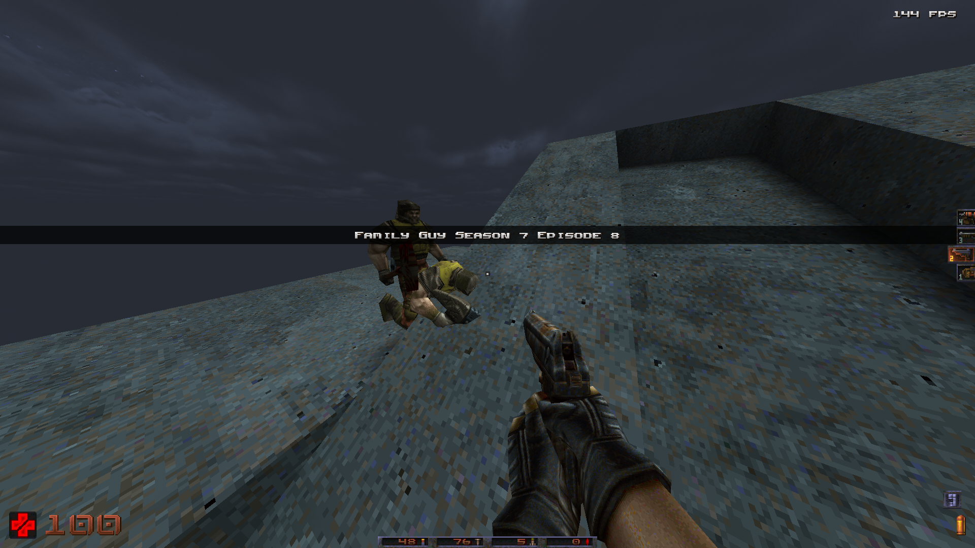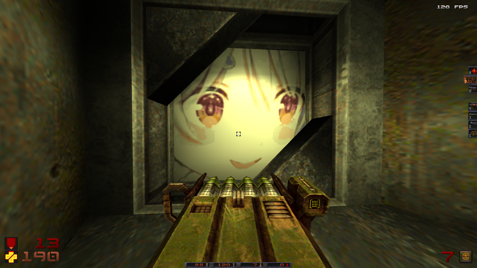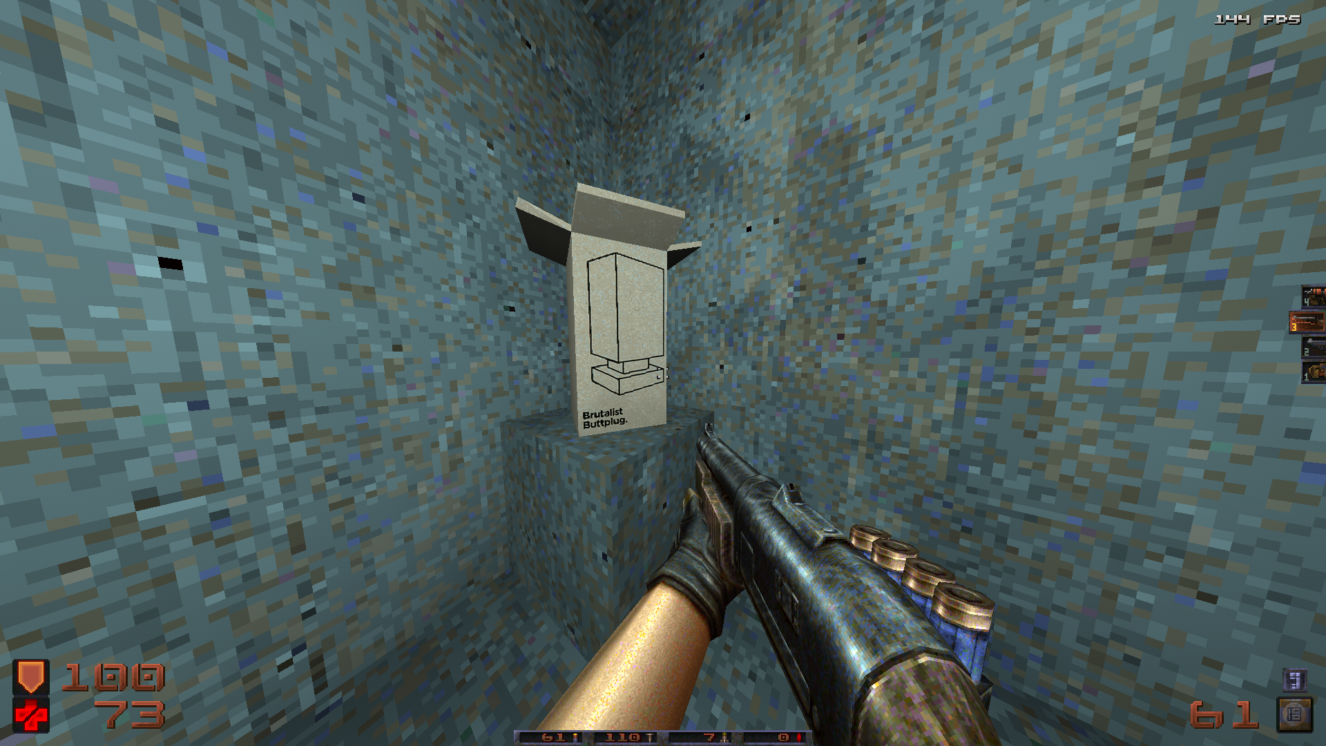 >>12296582>Worth noting that Deathstrider is the lamest out of the three due to the lack of custom monsters. There's only so much you can do with abstract concepts in an engine as simple as Doom that doesn't give you a lot of information to work with, like the presence of arms, legs, or even head to begin with.Always felt like a fair trade to be able to mix things up and play it with a variety of enemy mods.>>12296601It's an interesting "Quake crew" in general around here. Seems to have really picked up around 2023, both for bad and good.>>12296913>is the Quake Brutalist Jam III's hud interface supposed to look like this? I had two errors with unzipping this. One was just music so I ignored it.There's supposed to be custom weapon models as well, unless you're one of the anons from the last thread who's trying to play it through vanilla.Why would you ignore the music, by the way?