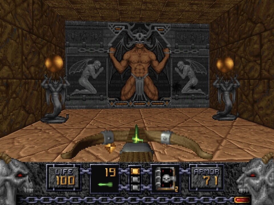 >Heretic 1As a 10-year-old kid, I was hooked on the mere gimmick of the weapon swinging when you run. Silly, I know.