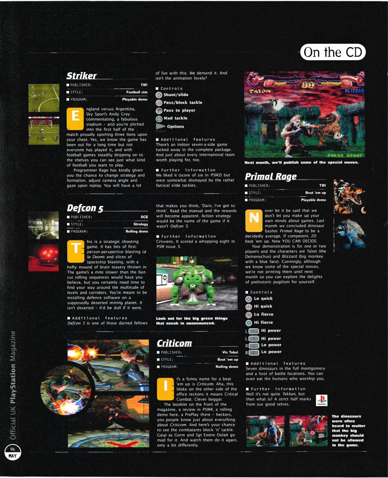 >>12296747>>12296749This is interesting. All the screenshots are from the DOS version, but the text definitely describes the console versions what with the permanent power ups for new player abilities. However, this is from may '96, it says release date for August that year, but the PSX version would only release in March of the next year. This is probably a hint that the PSX version was actually in development earlier than everyone expects.