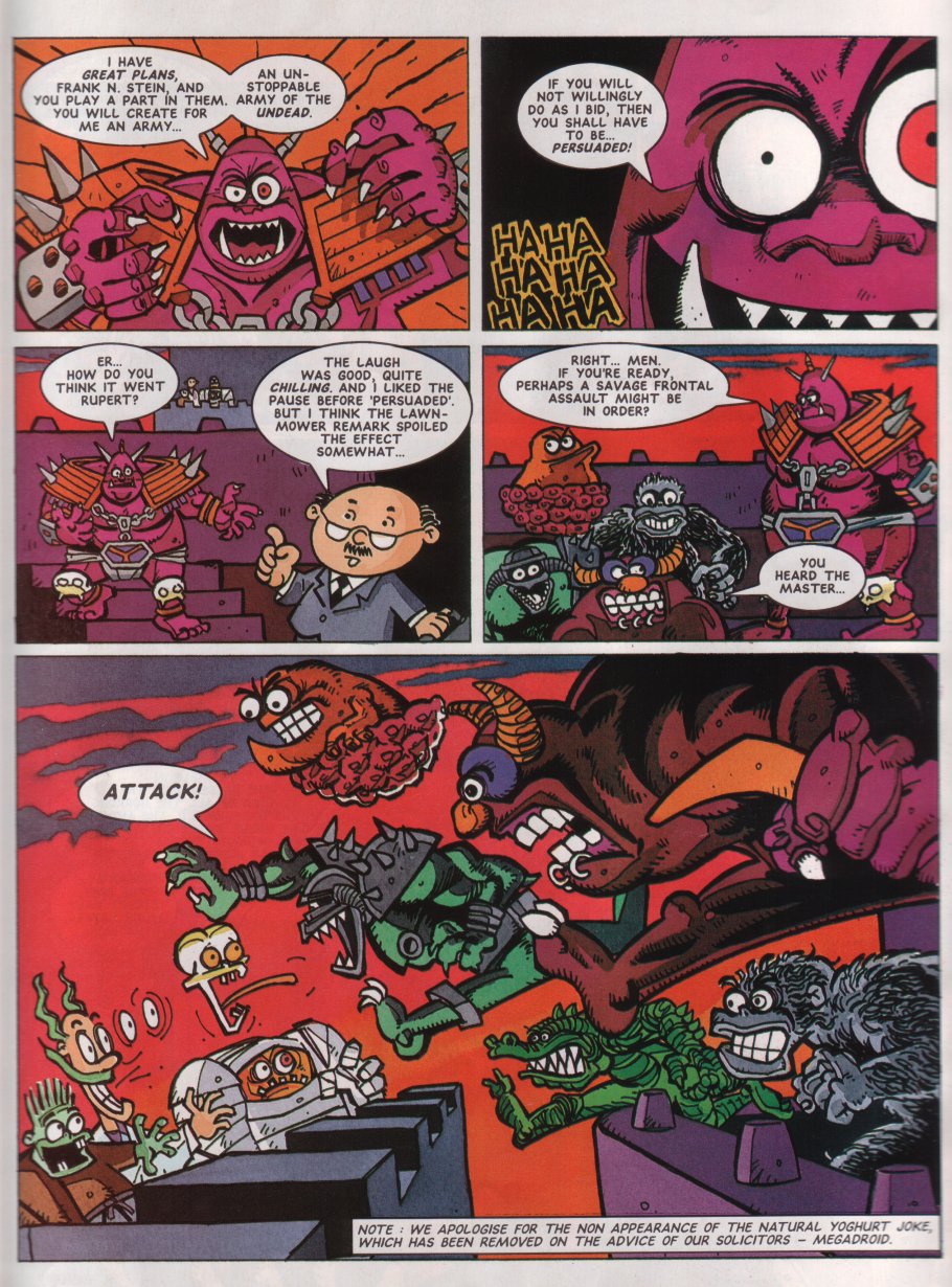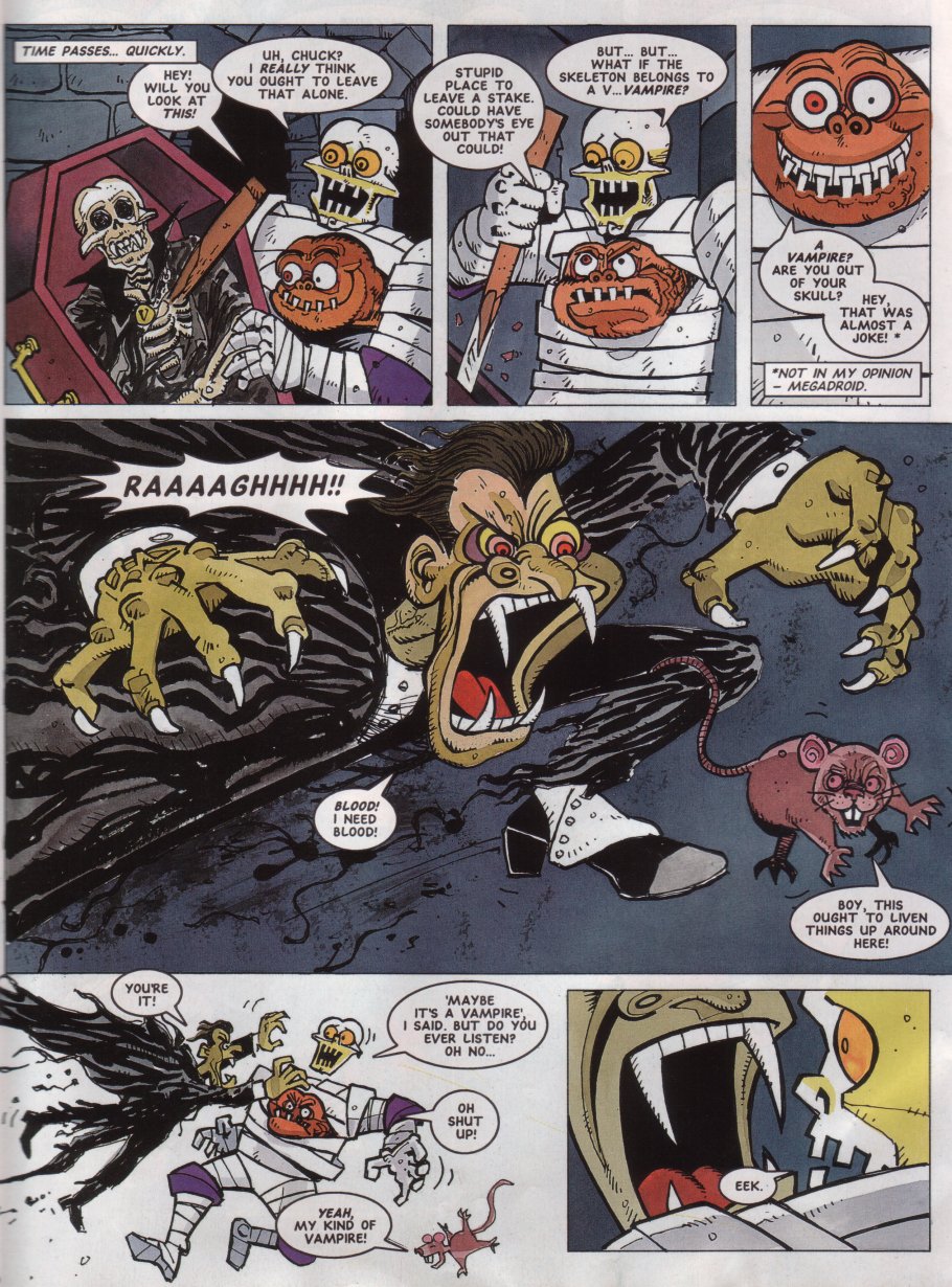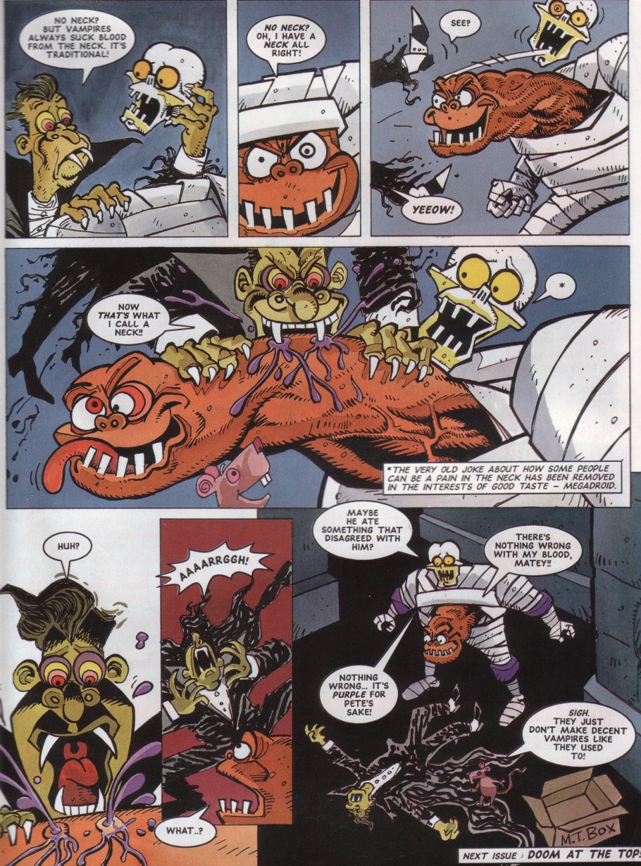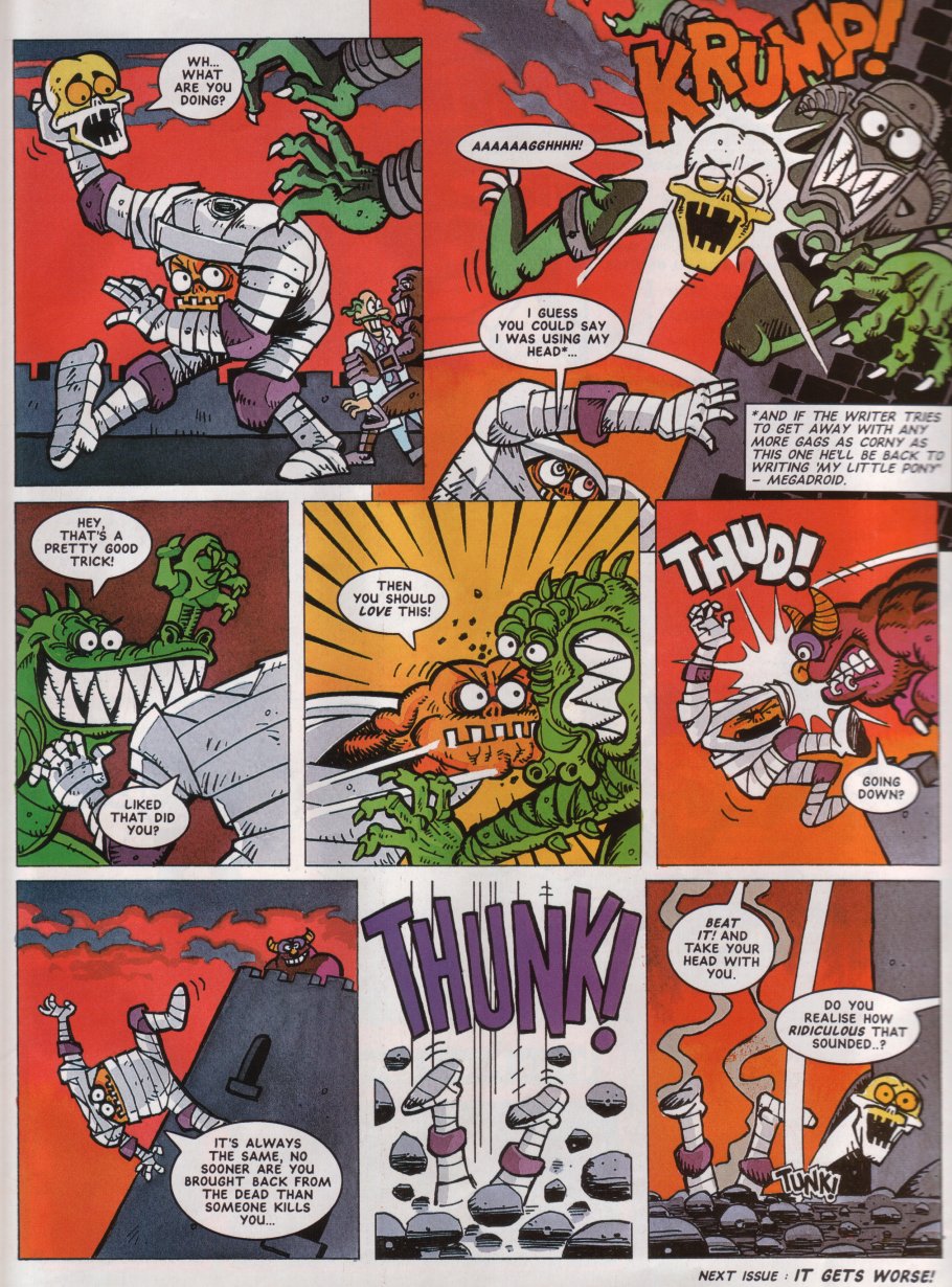 ENTER Megadroid! He's only been the "editor"/mascot of StC (kinda like Tharg in 2000AD) up until this point, but he finally appeared in a comic here.