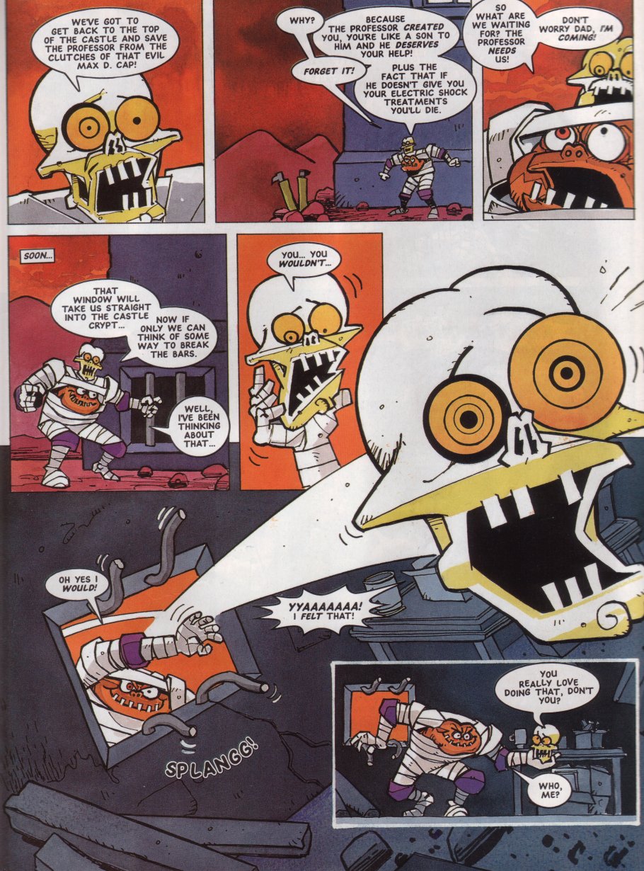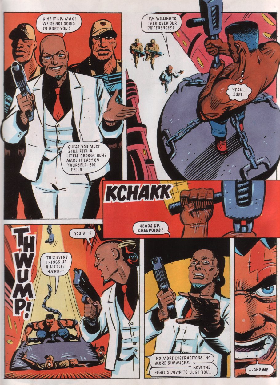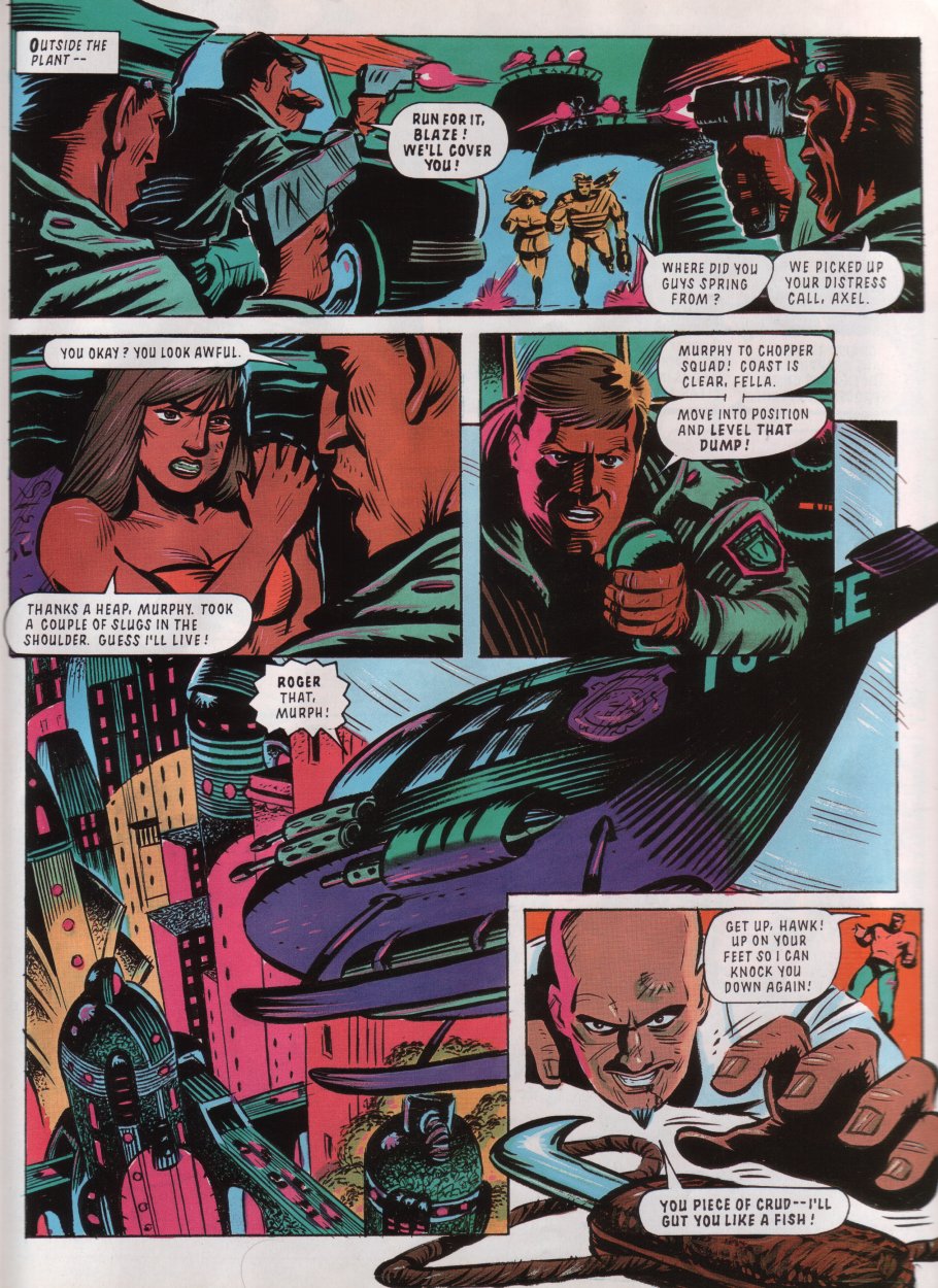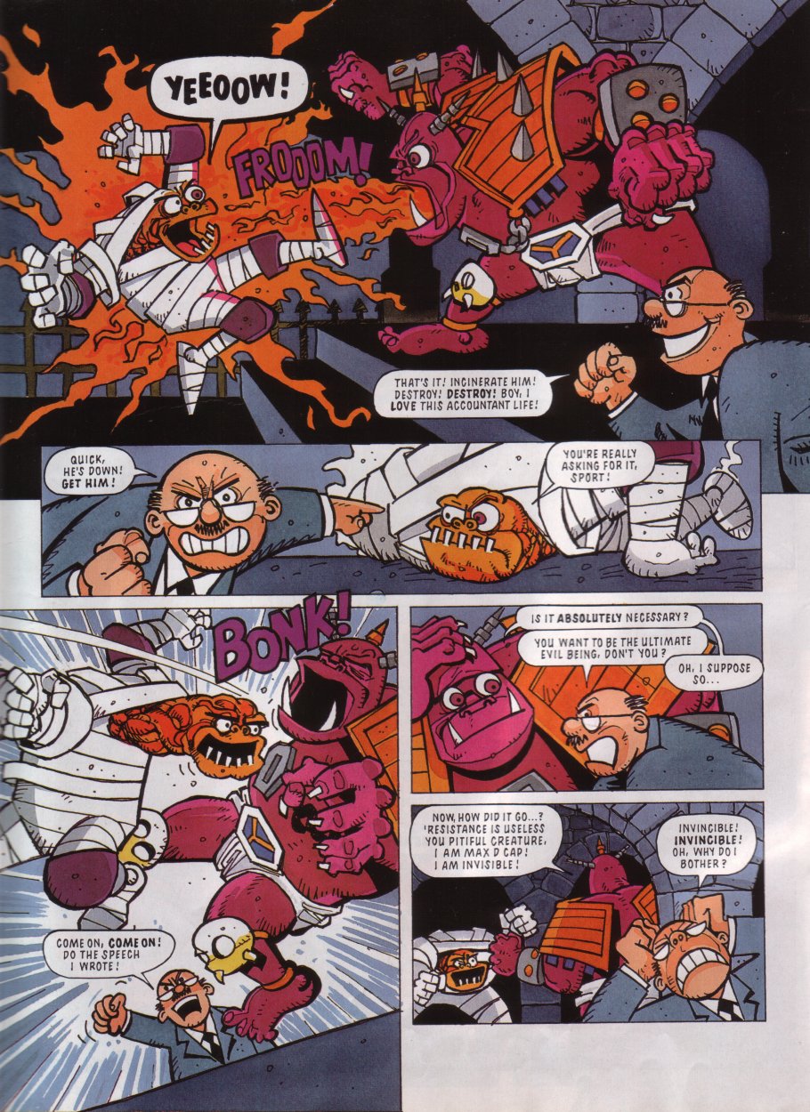ENTER Megadroid! He's only been the "editor"/mascot of StC (kinda like Tharg in 2000AD) up until this point, but he finally appeared in a comic here.