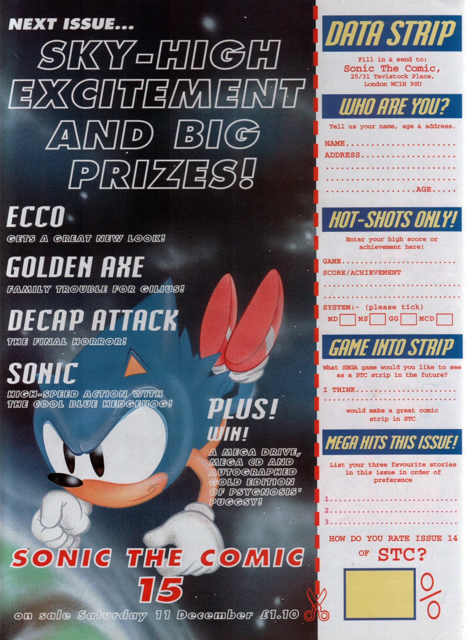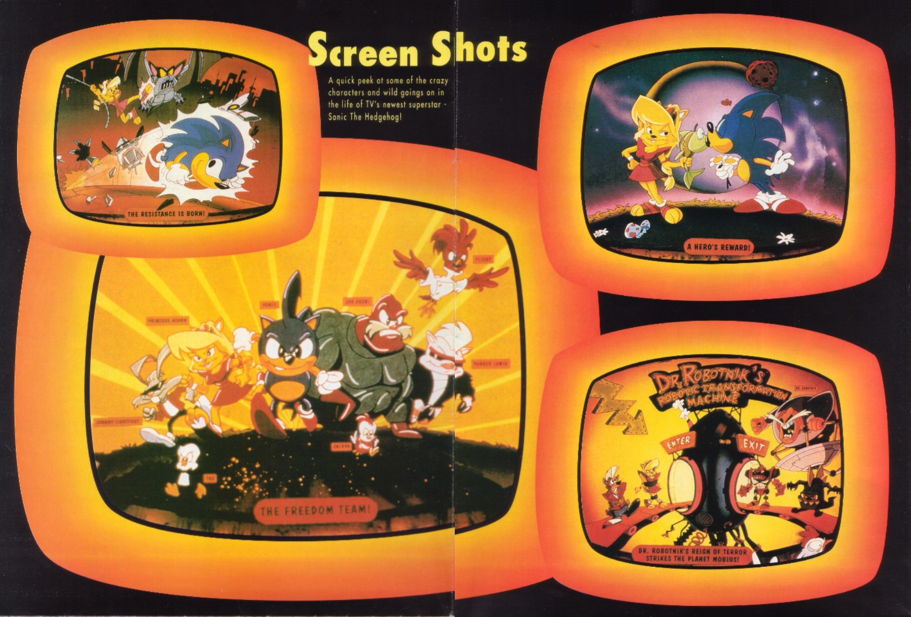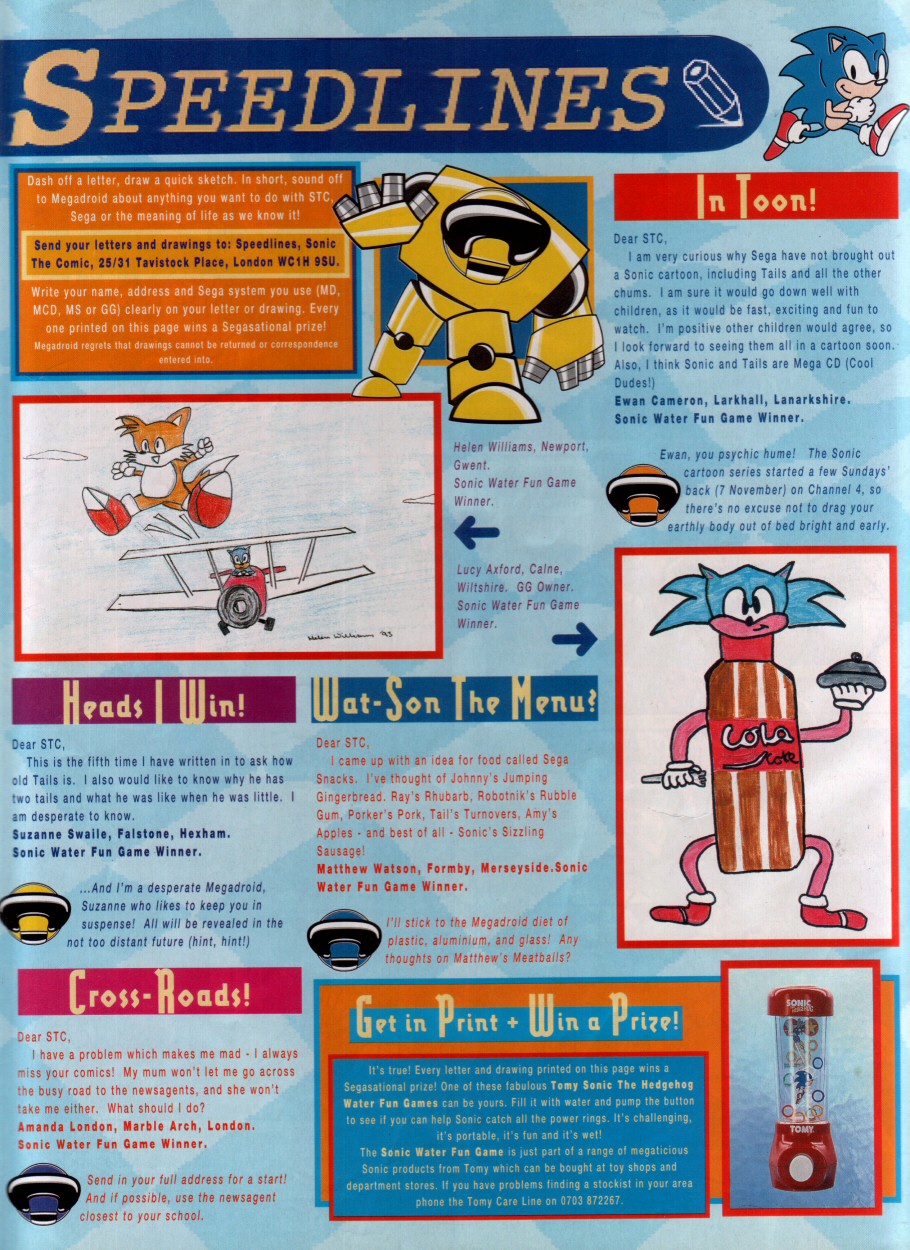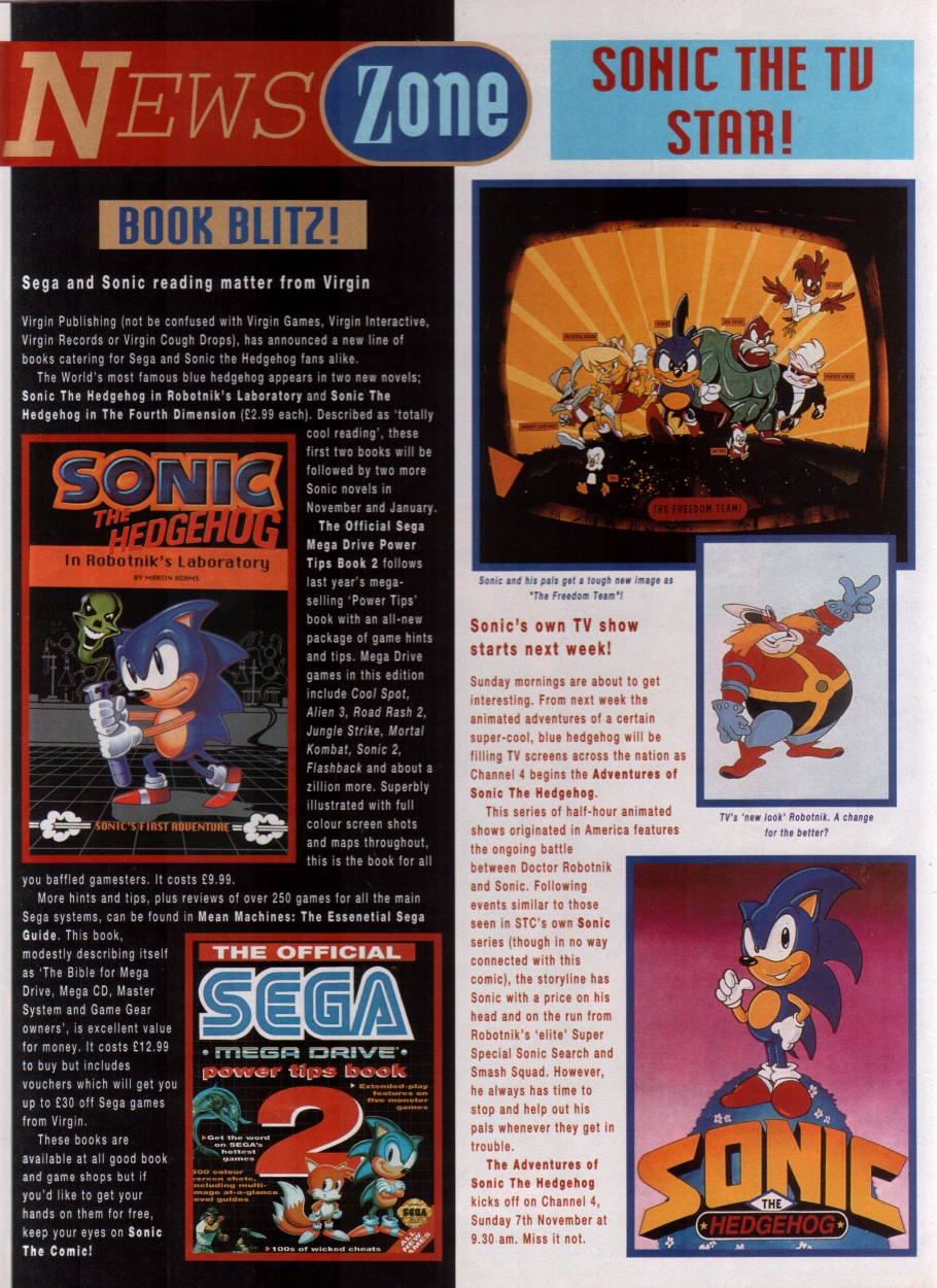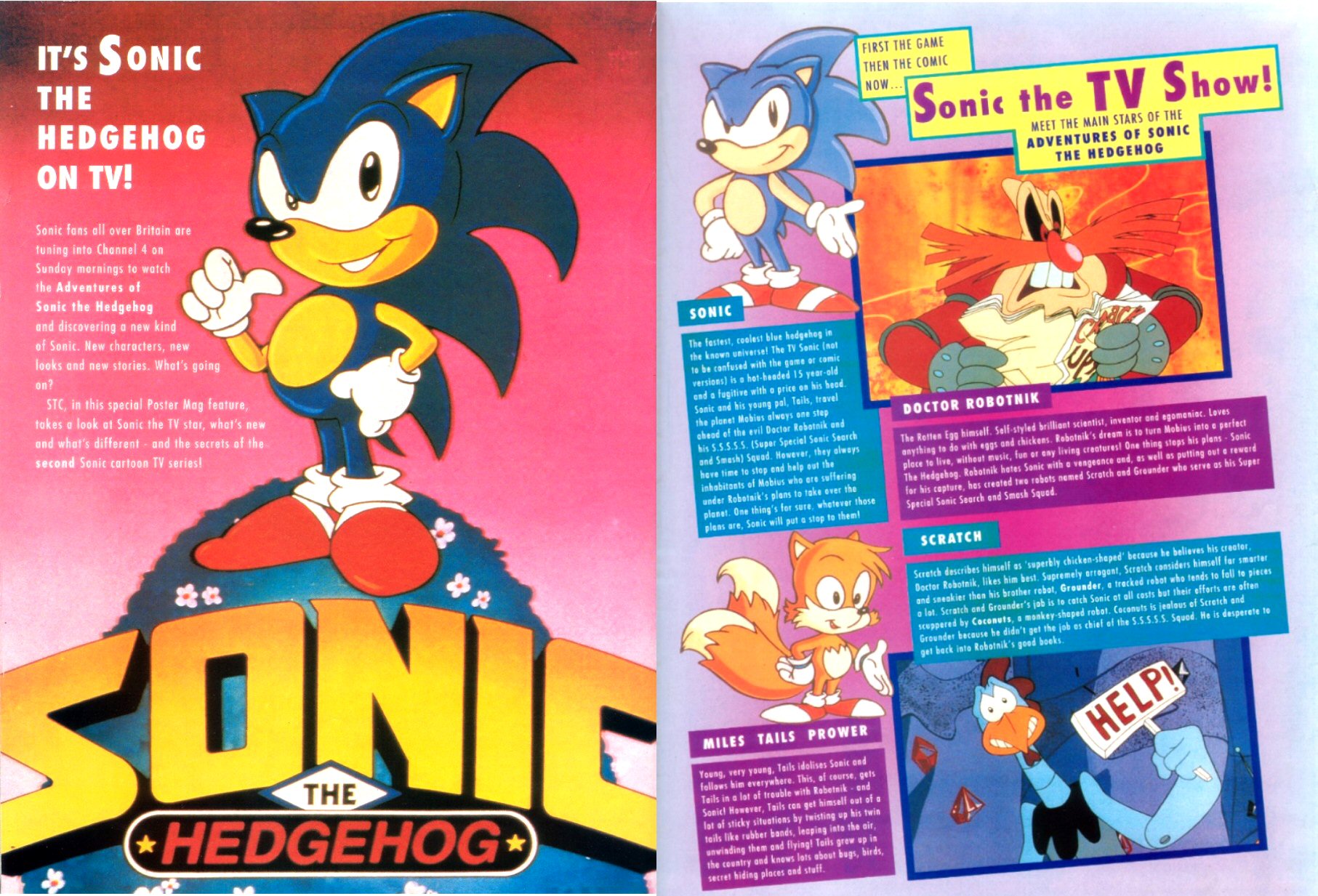These would feature comic stories in future issues, but for now you'll just have to be satisfied with information on the then-upcoming Sonic cartoons. Oh, and don't expect many posters in these scans.
