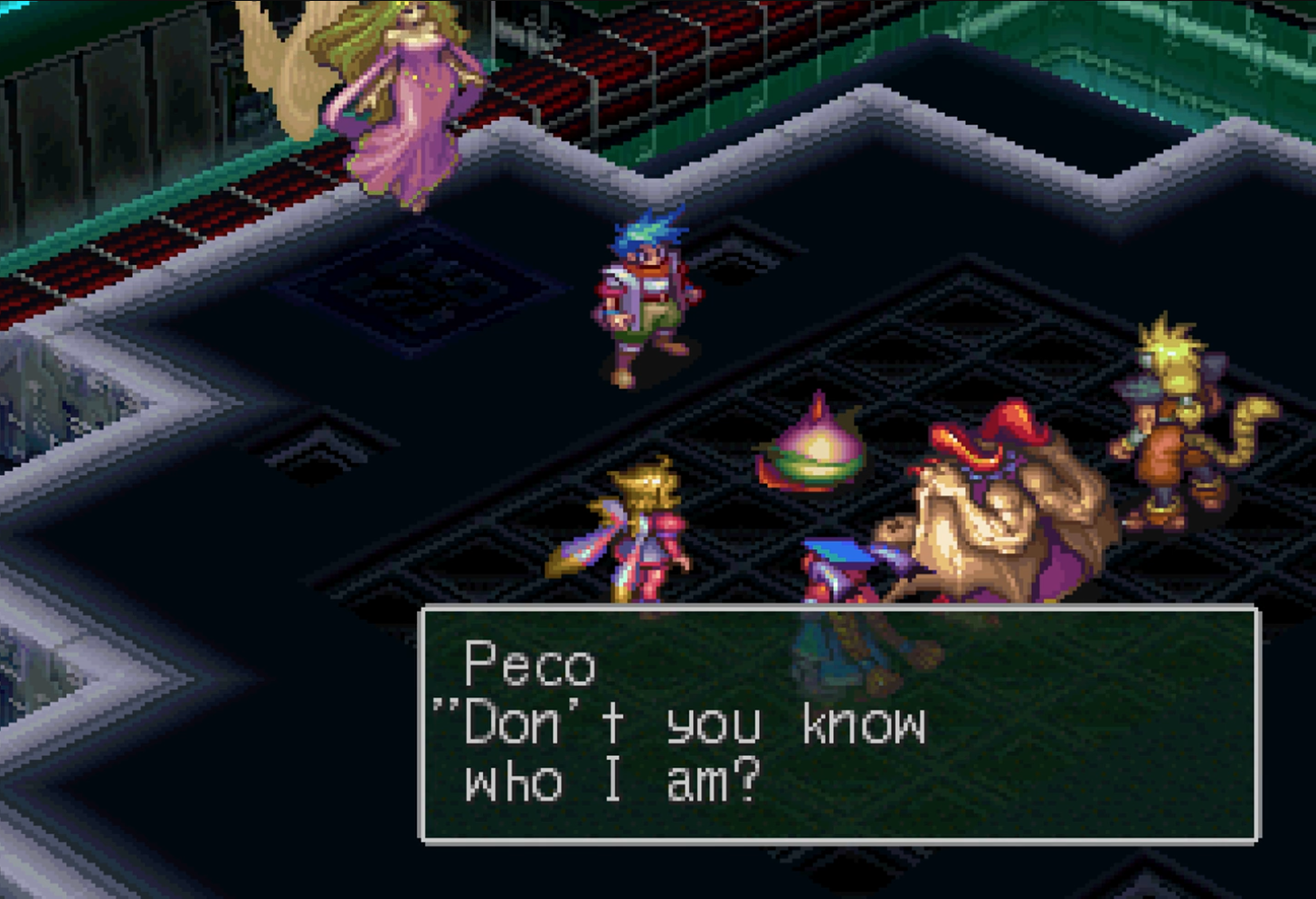 >>12303848How about all those shitty blocky bosses that have no business being polygons? Starting with the knight, the giant bird, the bizarre ass Me Saturn, fou Lu's guardians and even the very final boss. Yeah totally cherry picked they don't even give enough of a shit to give him a sprite in his final form it's choppy blocky dripping white sludge again. No shits given to the title screen localization either just a block of moon runes with tiny English text. It's like everyone has a collective psychosis around this and they seriously think losing the beautiful European art style around the worlds and characters makes 4 'better' with it's mud and wood. Final area is a cheap ass wooden palace compared to the thought that went into Obelisk, Infinity and Caer Xhan. It's like one weeaboo who loves anything Asian set some bullshit up decades ago about how great this nasty ass game looks and nobody bothered to actually question it themselves they just parroted it. Like 'hell yeah this shitty Nina in a blue blanket is better than all that detail that went into the characters in 1 and 2'.