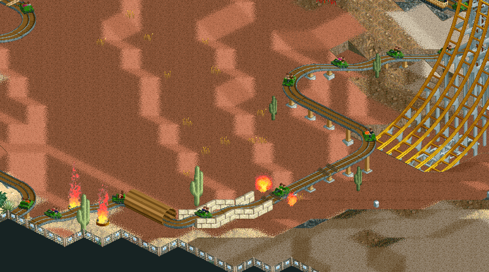 The south side railroad is complete. Please don't connect the isolated path loops until we actually build out there. They won't trap guests because the ride is free.