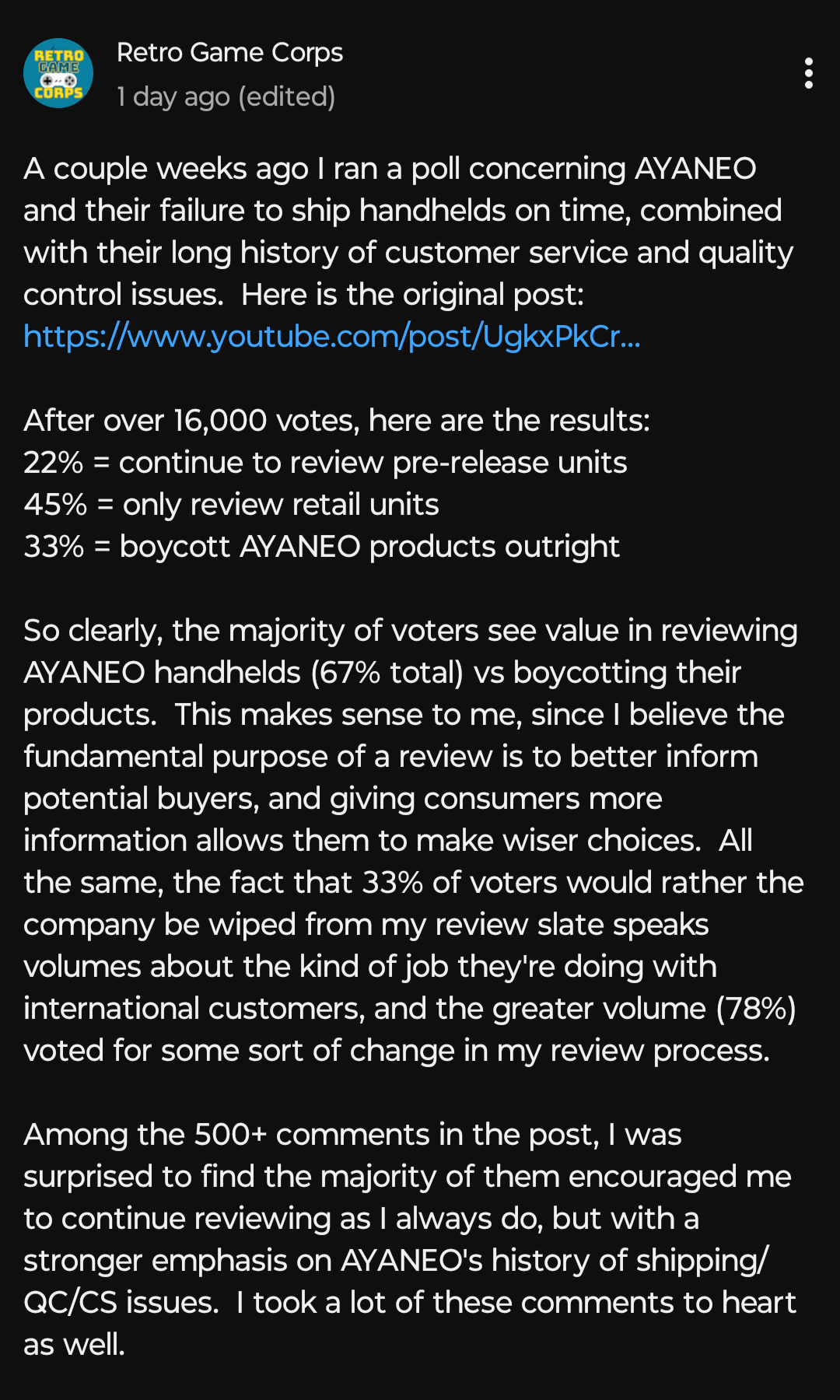 Also what’s wrong with his opnions? He refuses to review AYANEO for a good reason and the Ambernic reviews that he mainly does are on point