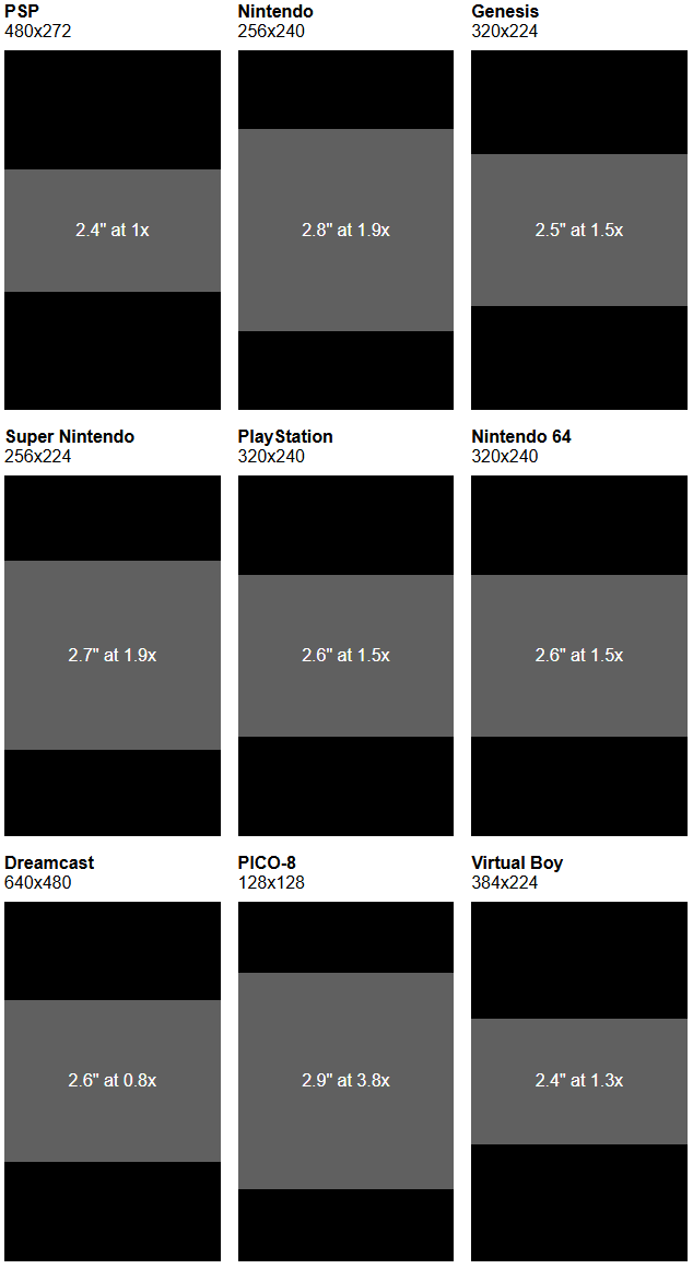 Compare handheld sizes - https://retrosizer.com/
