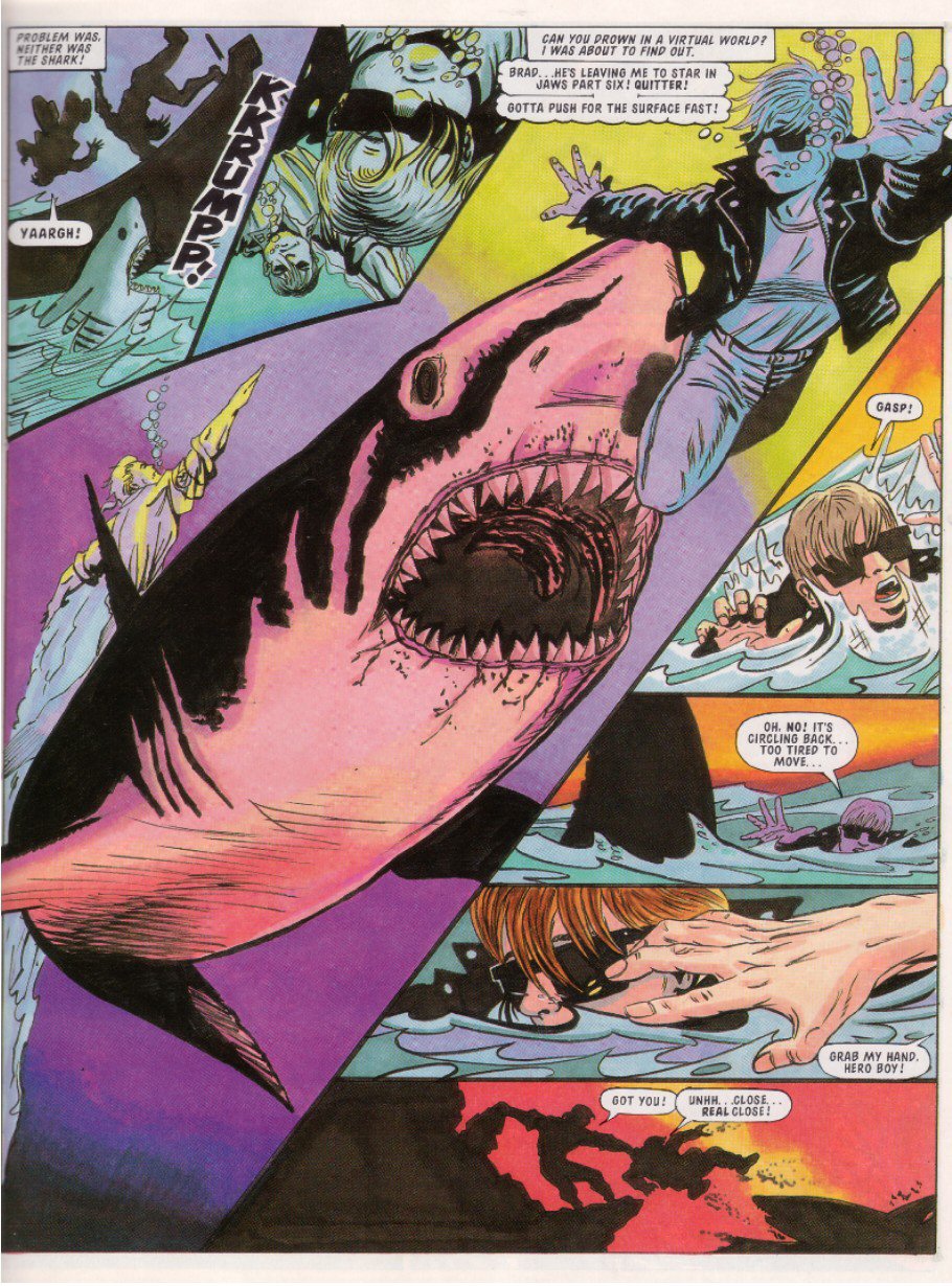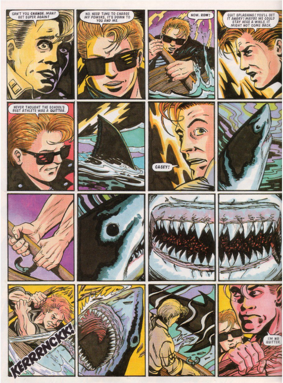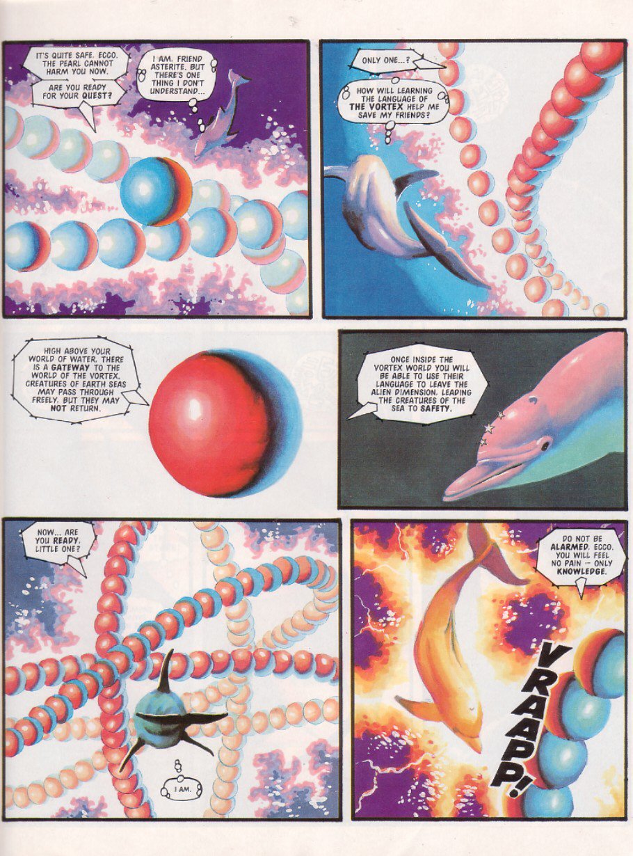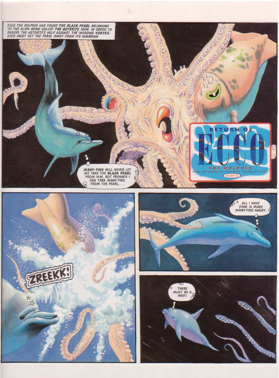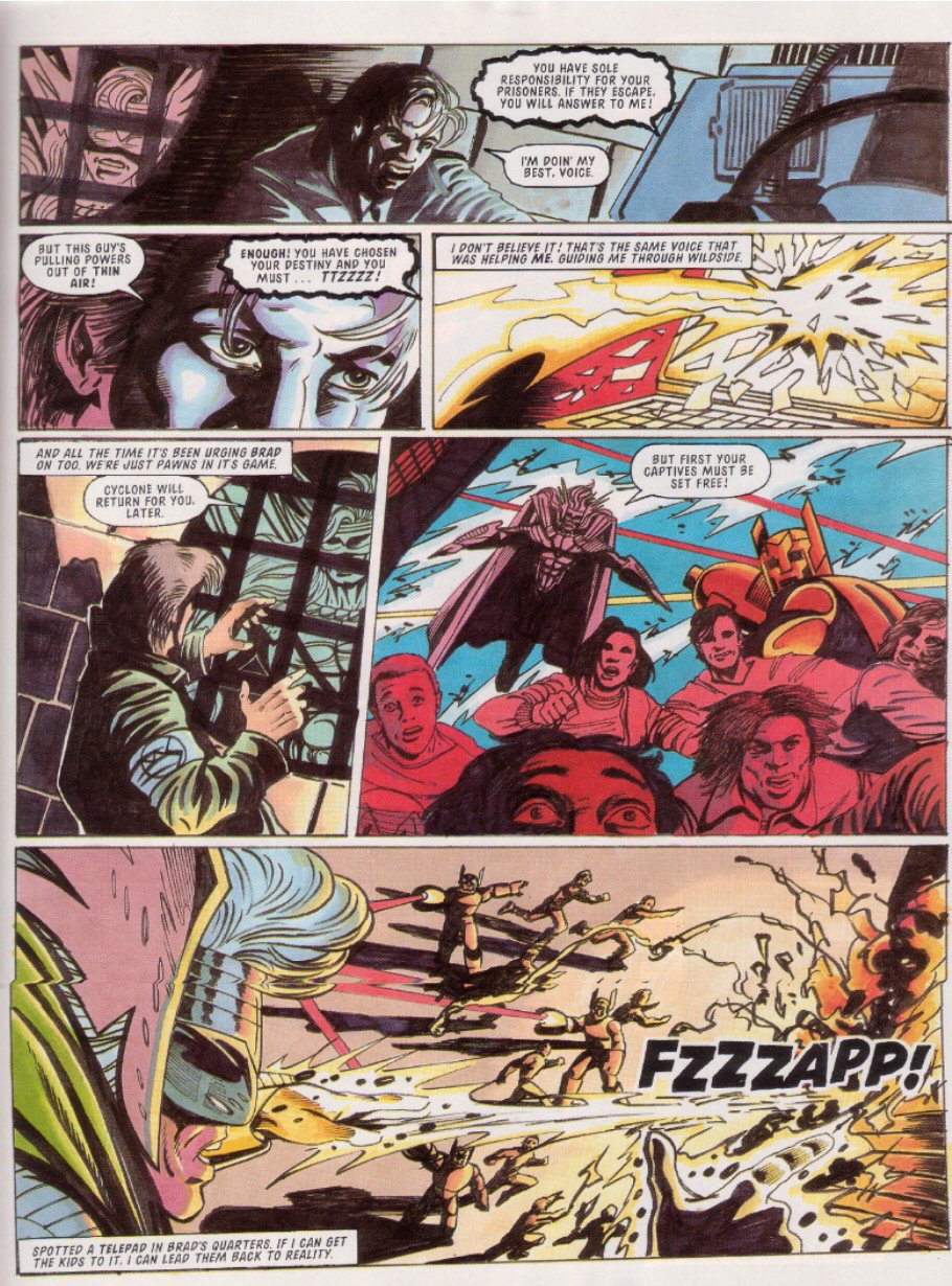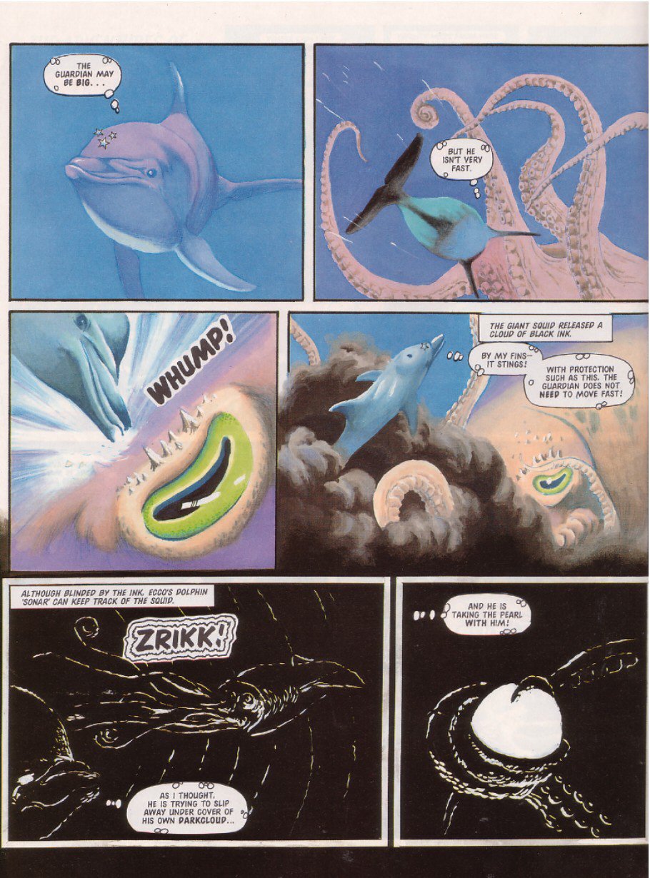 EXIT Sparkster! There are a few theories as to why he didn't show up again: one story is that Konami just refused to give StC the rights for further stories, even though a sequel had been almost completed. Another is that Fleetway never had the rights to begin with, and just assumed they did because hey, Sparkster's on the Mega Drive. This led Konami to go "What do you think you're playing at? ... Fine, you can finish things up, but that's IT, you got that?"Either way, the Rocket Knight was done.
