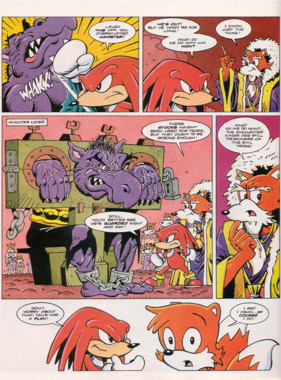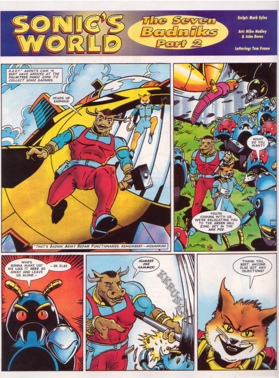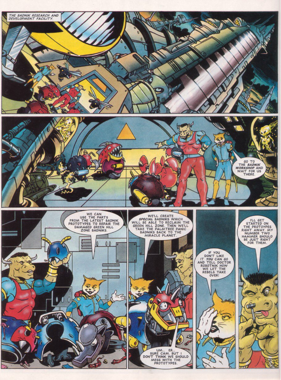 >>12358636Love how there's no "hey kids, write in if you want see more of these guys!", like the editor absolutely did NOT want those letters.But yeah, I remember reading part 3 of this as a kid, and thinking a badnik war was a cool as fuck idea, always wondered how it turned out. Bafflingly, it seems.