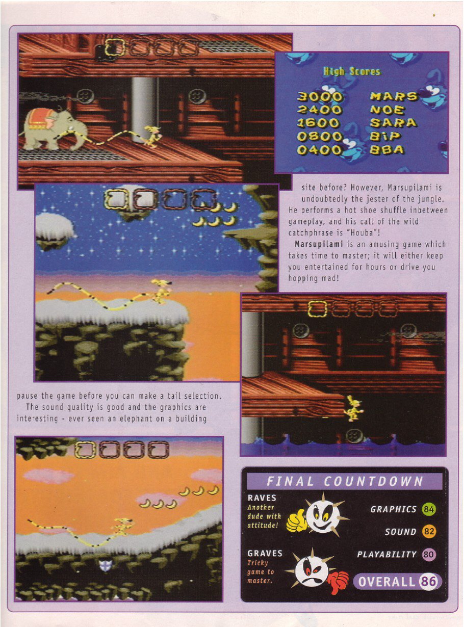 Mega DriveFIFA International Soccer 95% (StC 20)= Micro Machines 95% (StC 5)Earthworm Jim 94% (StC 42)= Micro Machines 2: Turbo Tournament 94% (StC 45)Street Racer 93% (StC 58)Davis Cup World Tour 92% (StC 16)= F1 92% (StC 14)= The Jungle Book 92% (StC 39)= Mega Swiv 92% (StC 49)= Super Street Fighter II 92% (StC 36)Comix Zone 91% (StC 60)= Dune II: Battle for Arrakis 91% (StC 28)= Mickey Mania: The Timeless Adventures of Mickey Mouse 91% (StC 42)= NBA Jam Tournament Edition 91% (StC 50)= Pete Sampras Tennis 91% (StC 31)= Sonic & Knuckles 91% (StC 43)= Sylvester and Tweety in Cagey Capers 91% (StC 40)= Urban Strike 91% (StC 41)Aladdin 90% (StC 10)= Cosmic Spacehead 90% (StC 12)= Dragon: The Bruce Lee Story 90% (StC 36)= The Incredible Hulk 90% (StC 35)= The Lion King 90% (StC 42)= Street Fighter II: Special Champion Edition 90% (StC 10)= Fantasic Dizzy 90% (StC 9)= Wayne Gretzky and the NHLPA All-Stars 90% (StC 57)Bubsy in Claws Encounters of the Furred Kind 88% (StC 8)= Ren & Stimpy: Stimpy's Invention 88% (StC 18)= Skitchin' 88% (StC 26)Castlevania: The New Generation 87% (StC 25)= Chuck Rock II: Son of Chuck 87% (StC 14)= General Chaos 87% (StC 21)= James Pond 3 87% (StC 25)= Judge Dredd 87% (StC 57)= The Smurfs 87% (StC 48)Ballz 86% (StC 39)= Gods 86% (StC 18)= The Lost Vikings 86% (StC 28)= Marsupilami 86% (StC 62)= Mutant League Hockey 86% (StC 31)= Pitfall: The Mayan Adventure 86% (StC 46)= Ristar 86% (StC 46)Bubsy II 85% (StC 40)= Eternal Champions 85% (StC 17)= The Flintstones 85% (StC 1)= Jungle Strike 85% (StC 2)= Mario Andretti Racing 85% (StC 34)= Mazin Wars 85% (StC 6)= Shinobi III 85% (StC 7)= Streets of Rage III 85% (StC 29)= Subterrania 85% (StC 23)= ToeJam & Earl in Panic on Funkotron 85% (StC 16)Sonic 3 didn't get a rating when it was reviewed in StC 19, but given S&K's and Sonic CD's scores we can intuit that it would've gotten at least 91%, with S&K getting at least 92% instead