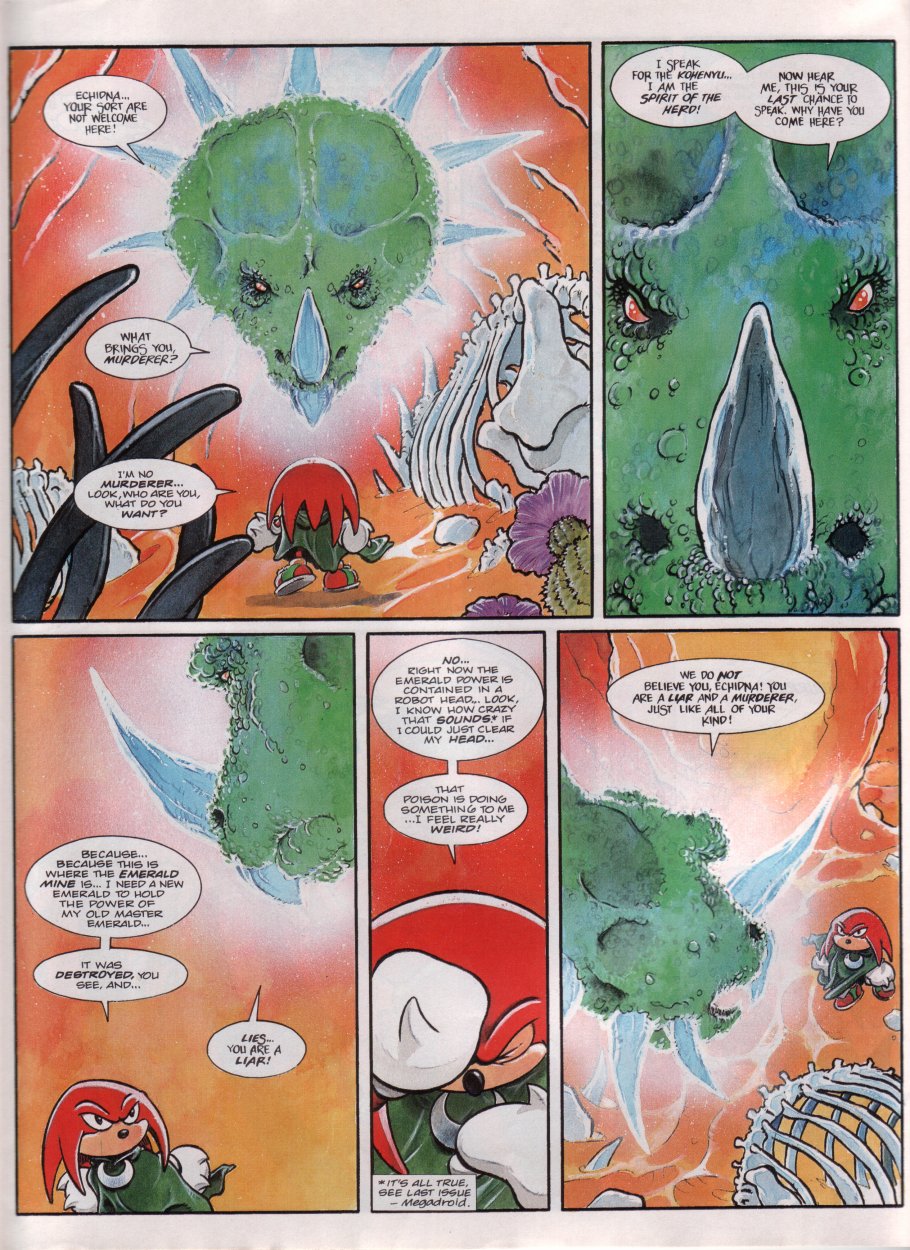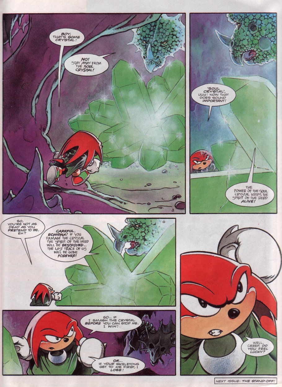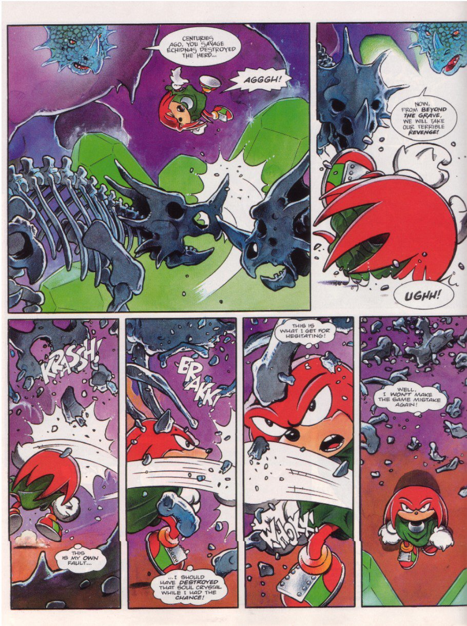 also the knuckles story where he gets a new crystal for the master emerald i really liked as a kid, didnt realise the art was done by a different artist nigel dobbyn which has a cool style.