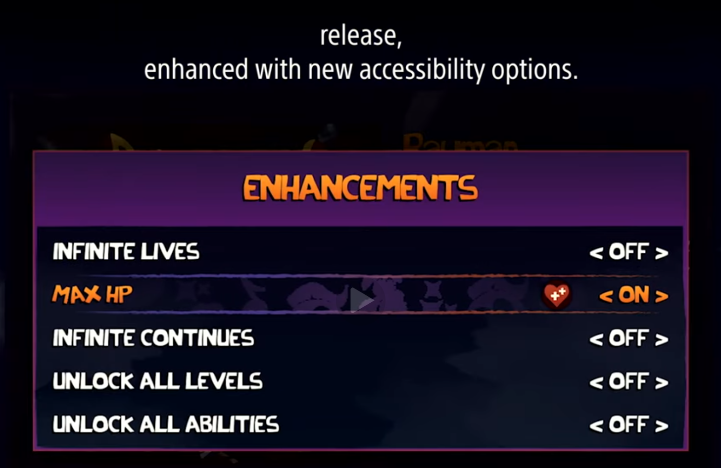 >>12382567Honestly the cheat options don't bother me like they usually would. The original Rayman is fucking ridiculously unreasonably hard to the point where it would be a bitch to play even with unlimited lives.