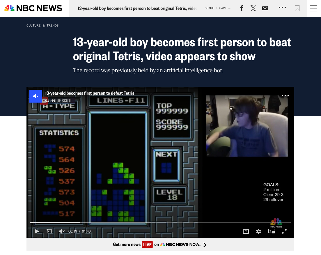 The modern way they play tetris hardly counts. It's similar to how competitive rubiks cube players solve them. They seriously turn the controllers upside down and slide the buttons around so pieces keep flipping until they lock into the perfect spot. It's skill still but not in the spirit of the game.