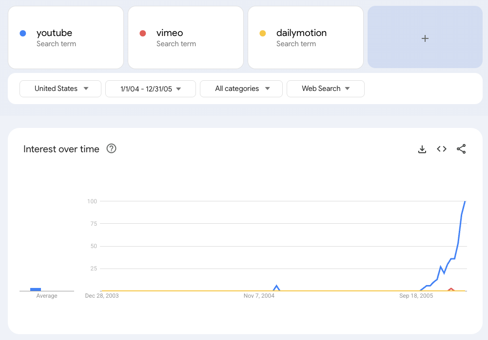 I showed you 2004-2005 first because Vimeo would be at 0 otherwise. Sorry but the data doesn't lie.