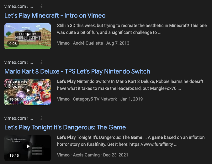 as an aside, vimeo was getting such traffic from video lps that they banned gaming videos in july of 2008. you can look this up on google.