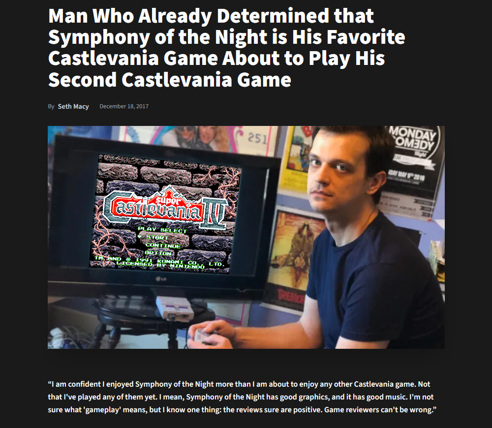 >In Local News: Man Who Already Decided SotN is His Favorite Castlevania Game About to Play His 2nd Castlevania Game