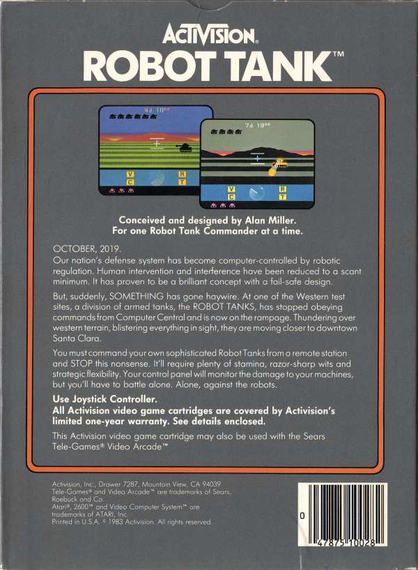 >>12390459Robot Tank. It's my favorite game on the 2600 and I would love to see a autistic modern recreation where you drive a retro futuristic 1980s cold-war remote control UGV across the Western United States fighting rogue UGVs with wire guided missiles. A blend of arcade action and simulation with the component damage and system failures of the original, but still getting to blaze away dozens of enemy vehicles like it's ace combat. Unfortunately it's owned by Activision so we'll never ever see a reboot or anything besides a tiny reference in the latest slop of duty.