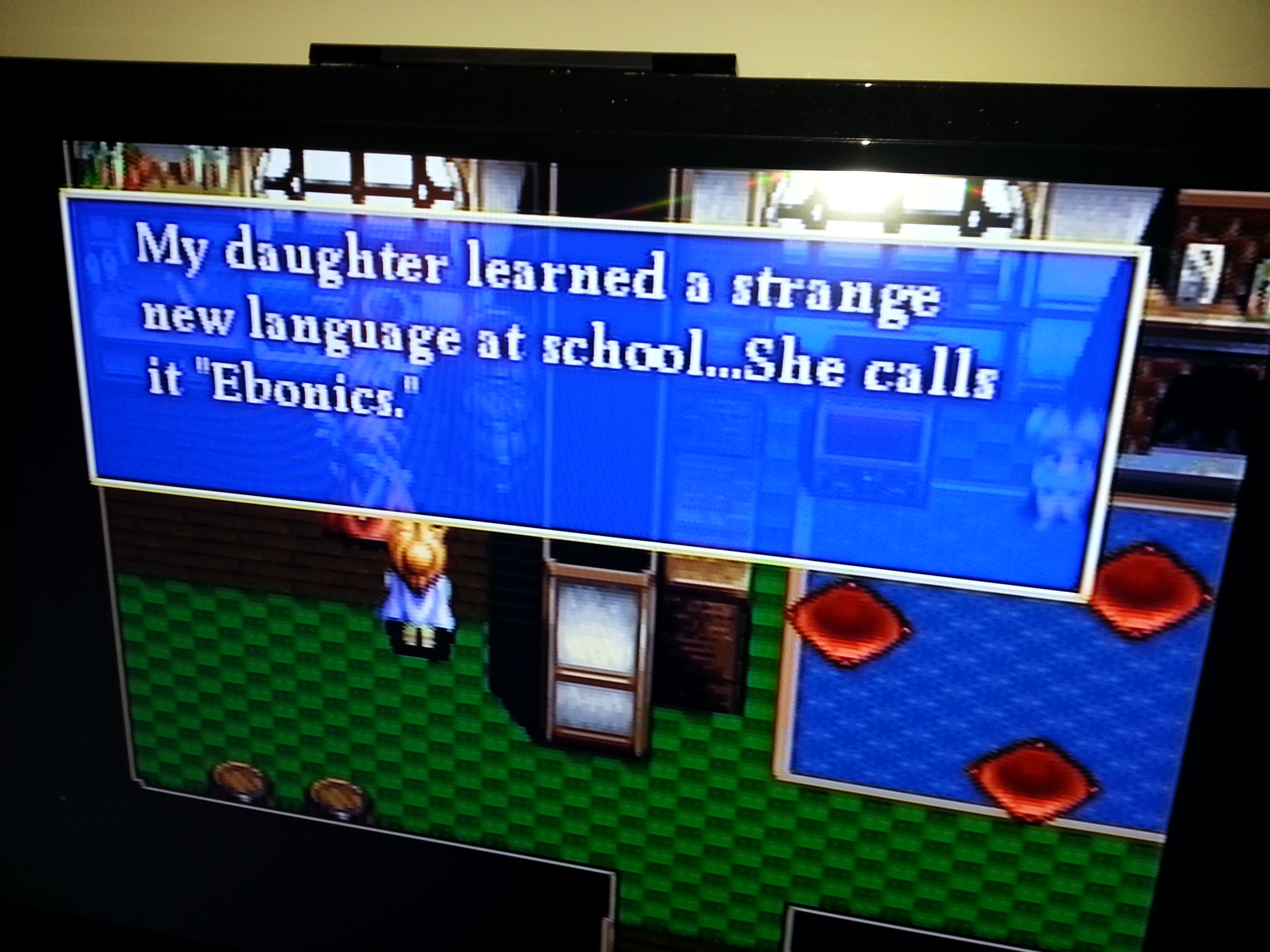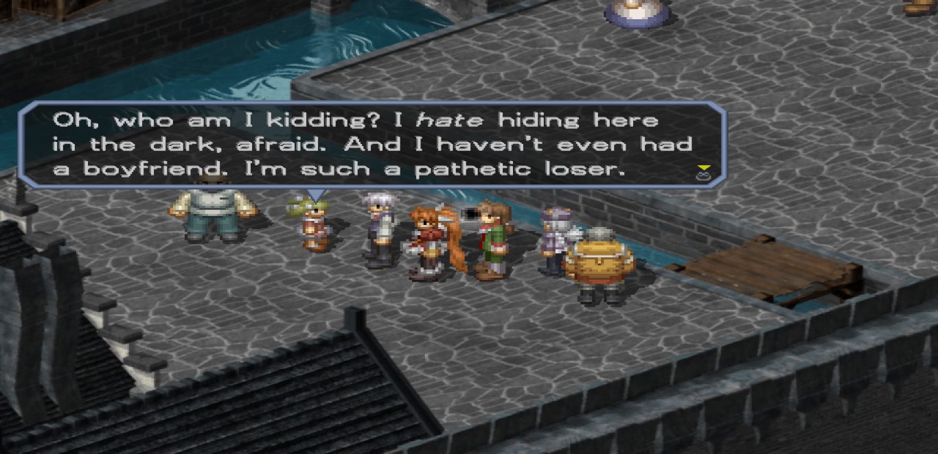 >>12398467>I'm pretty sure it's just an Airplane! reference.that's why it's redditanother example is during certain part of the game supposed to sad group of people spending the night listening to a sorrowful song, an one of the NPC's you can talk with says ''let's party like it's LE 1999!!!"Working Designs is the godfather of ''modern trannyslators shoving their quirky humor to spice up the text''