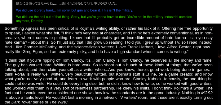 People are bashing Working Design, but you're in denial about the US translation of MGS 2 by Agness Kaku.