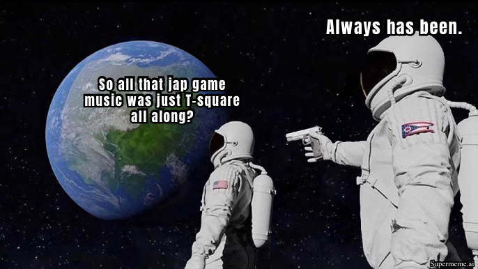 >>12399003I don't know about an improvement, but even though it may well have been a strong inspiration, Guile's theme is much more fitting for a high energy fighting game than the T-square song (which sounds more like something you'd have heard in MvC2).Even normal musicians often take obvious direct inspiration from other songs, so it shouldn't be surprising that videogame composers do the same, especially since, particularly back in the day, they had to pump out a lot of music in a very short period of time. Some might have been fully intentional, some might have been instances of them having an inkling of an idea for a song without even realizing they were actually thinking of a specific song they'd heard on the radio, and never realized it during the 8 hours of time they had to put in to composing the song.