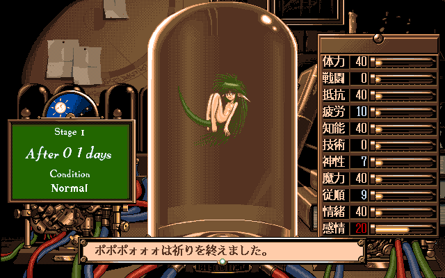 >>12405607Yeah exactly. Most of the game is managing her schedule to raise various stats (making her work on a farm to build strength for example) while making sure she is kept happy enough that she doesn't get depressed or sick or rebel against you. There's also a simple RPG mode where you can send her out to explore, get into battles and find secrets.