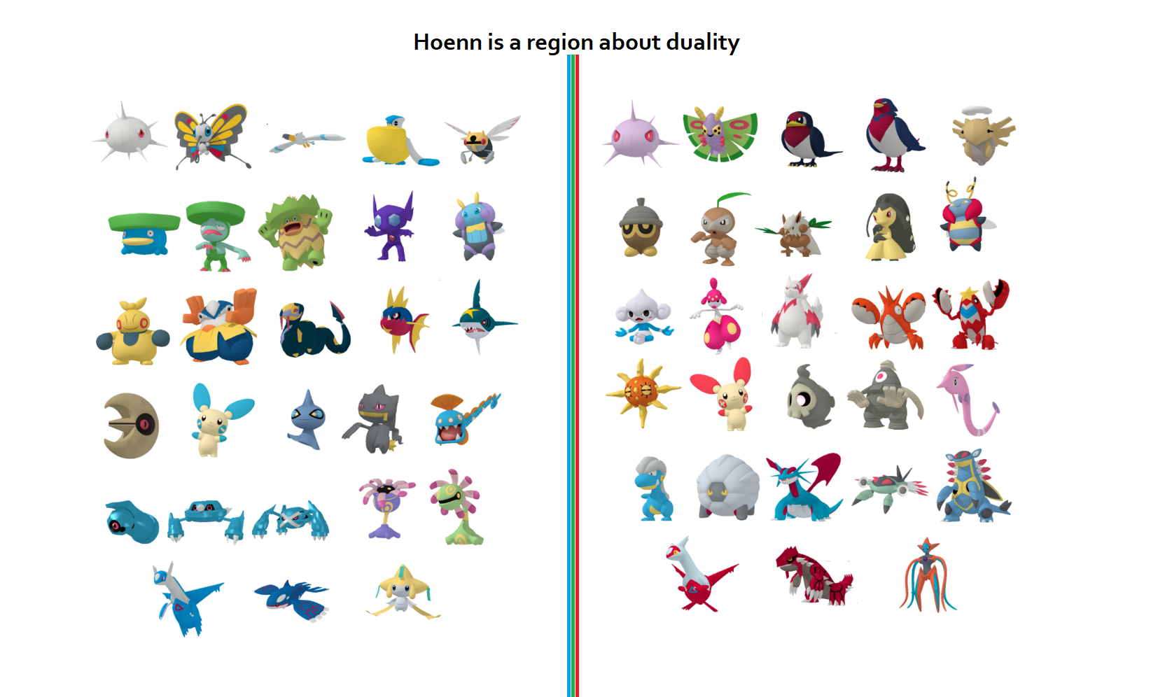 >>12435886>hoenn invented version exclusives/obvious counterpart monsLiterally fucking Pidgey and Spearow and more do that since Gen 1