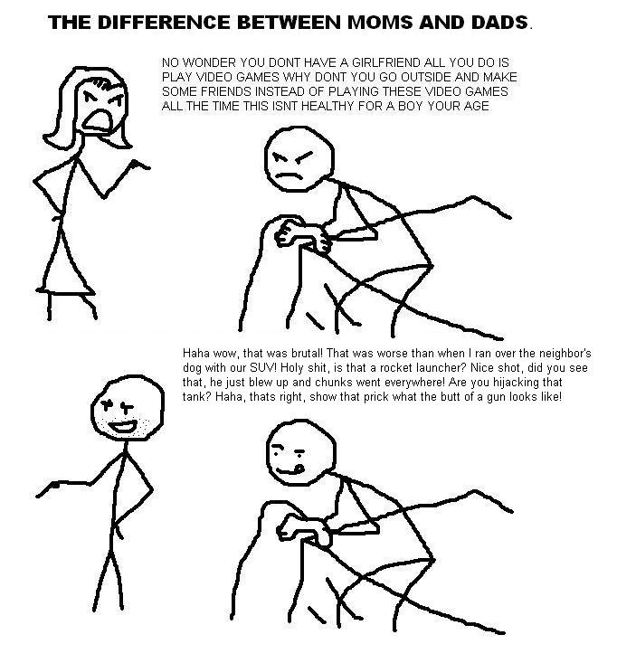 I was lucky with my parents in that they were both kinda social outcasts that developed their own niche interests. My dad was into electronics and computers and really introduced me to gaming when i was extremely young, though he mainly was only obsessed with flight sims. My mom played Tetris on my snes once and Donkey Konga when i got that, but she also kinda became obsessed with shit like Angry Birds when she got a smart phone. My mom collected antiques so i went with her to all kinds of thrift stores and flea markets as a kid that let scoop of games for really cheap long before they became trendy. I think she just enjoyed having me along as a companion and would buy me random stuff she found when i was at school that she found like a virtual boy or game boy store displays. 30+ years later she still calls me asking if im interested in some gaming related thing she stumbles upon.Only time i got shit for over gaymin, was when i played WoW. But once my dad finally understood from a coworker of his that also played that i was playing with other people, they suddenly stopped caring how much i played. Guess they saw it as a social activity.