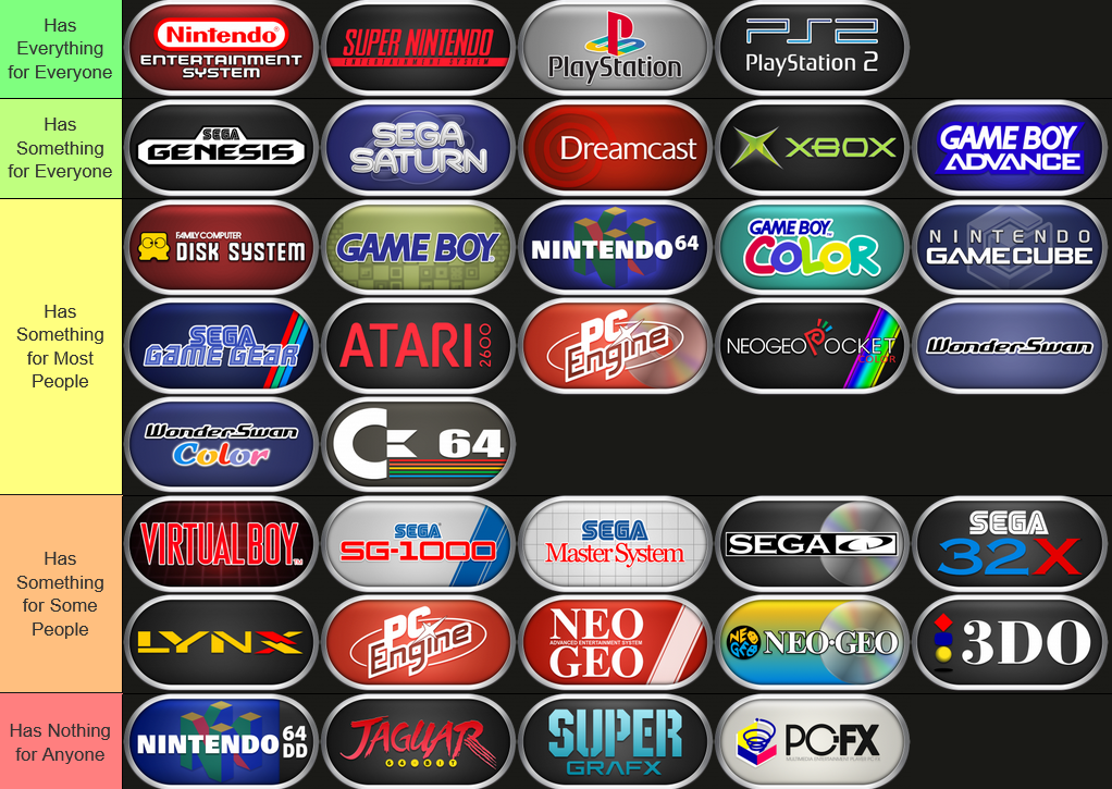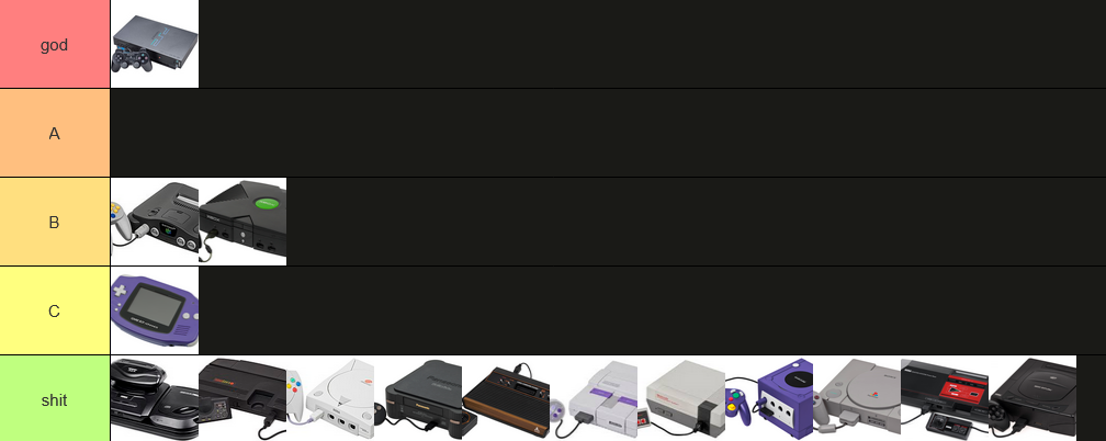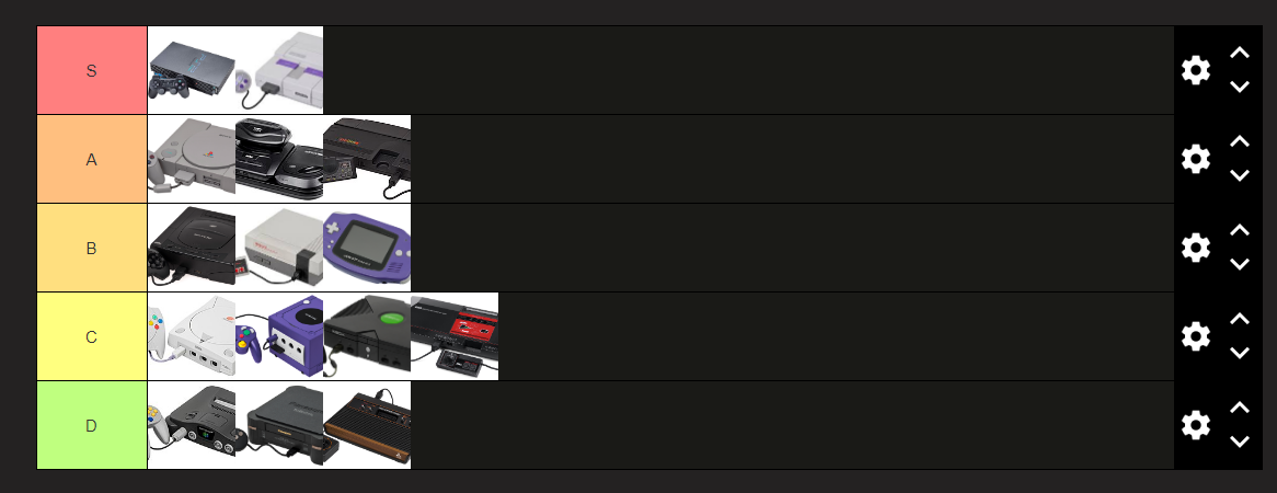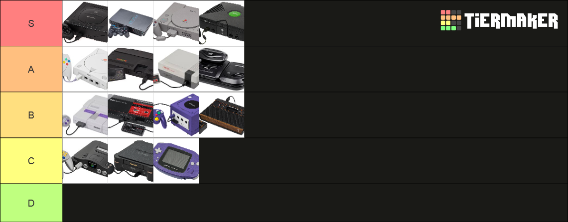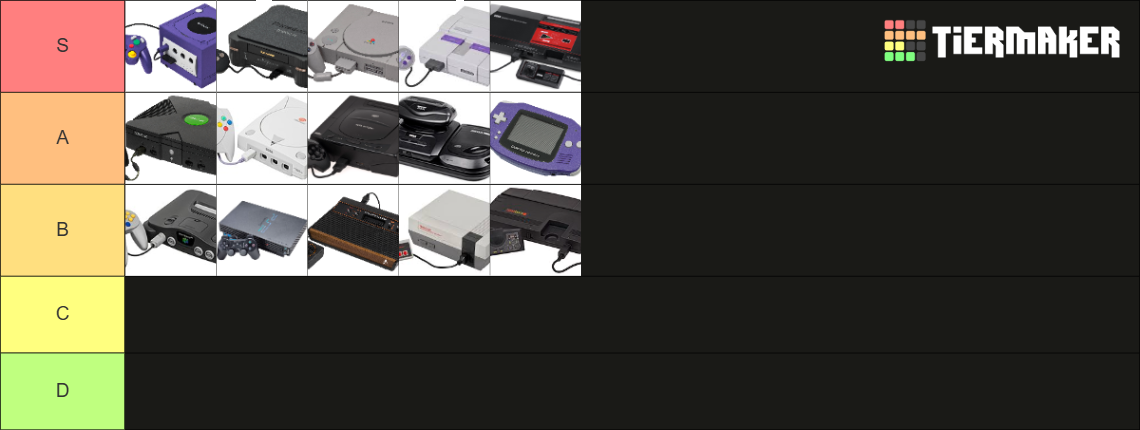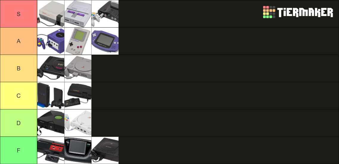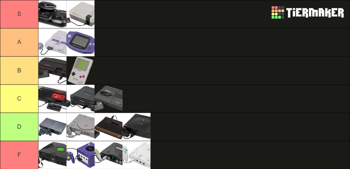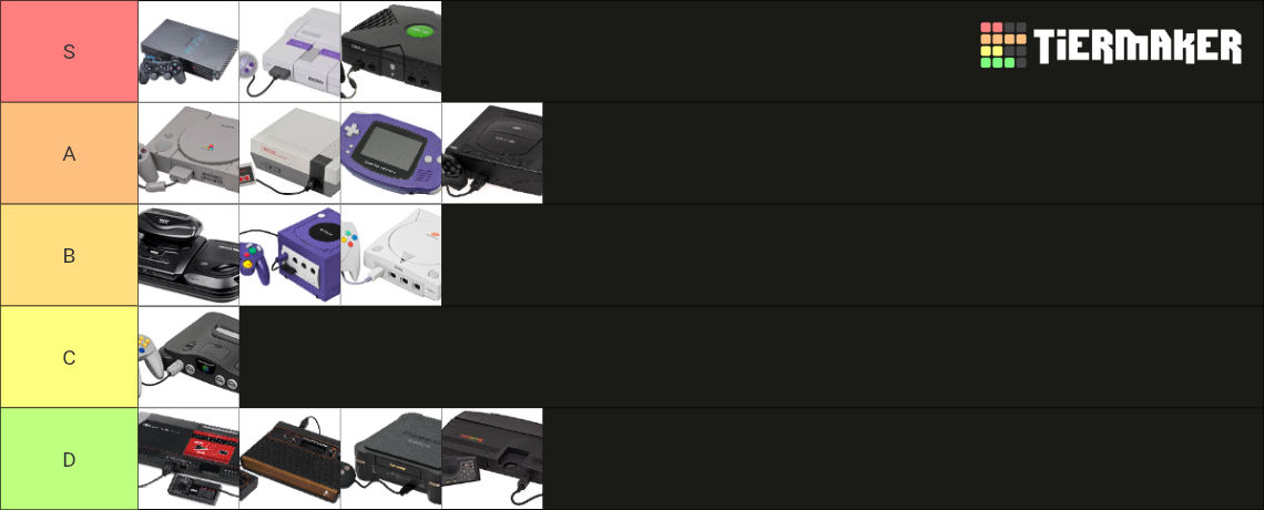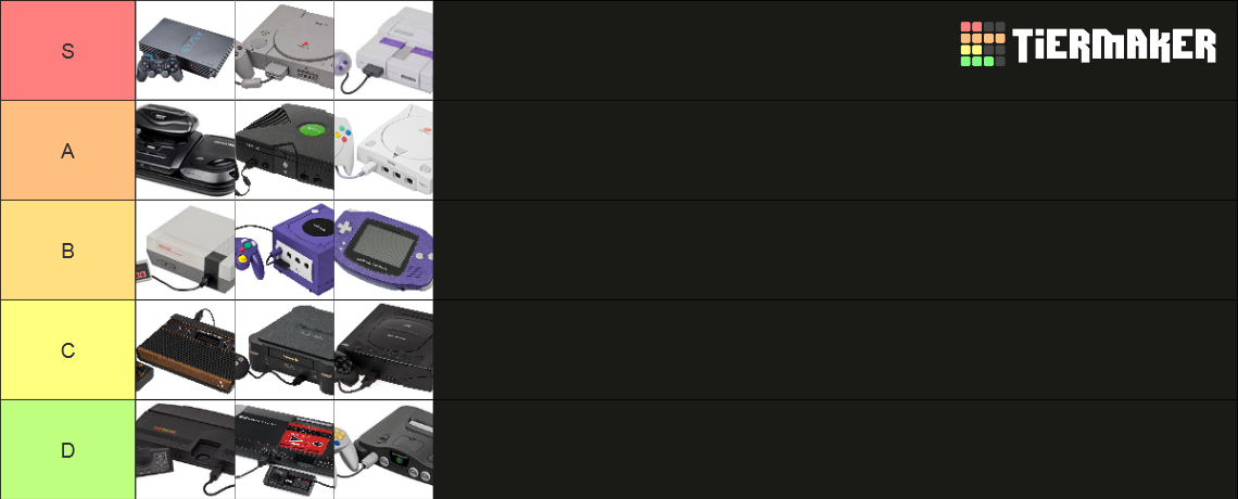 Make your own: https://tiermaker.com/create/retro-game-console-tier-list-44887