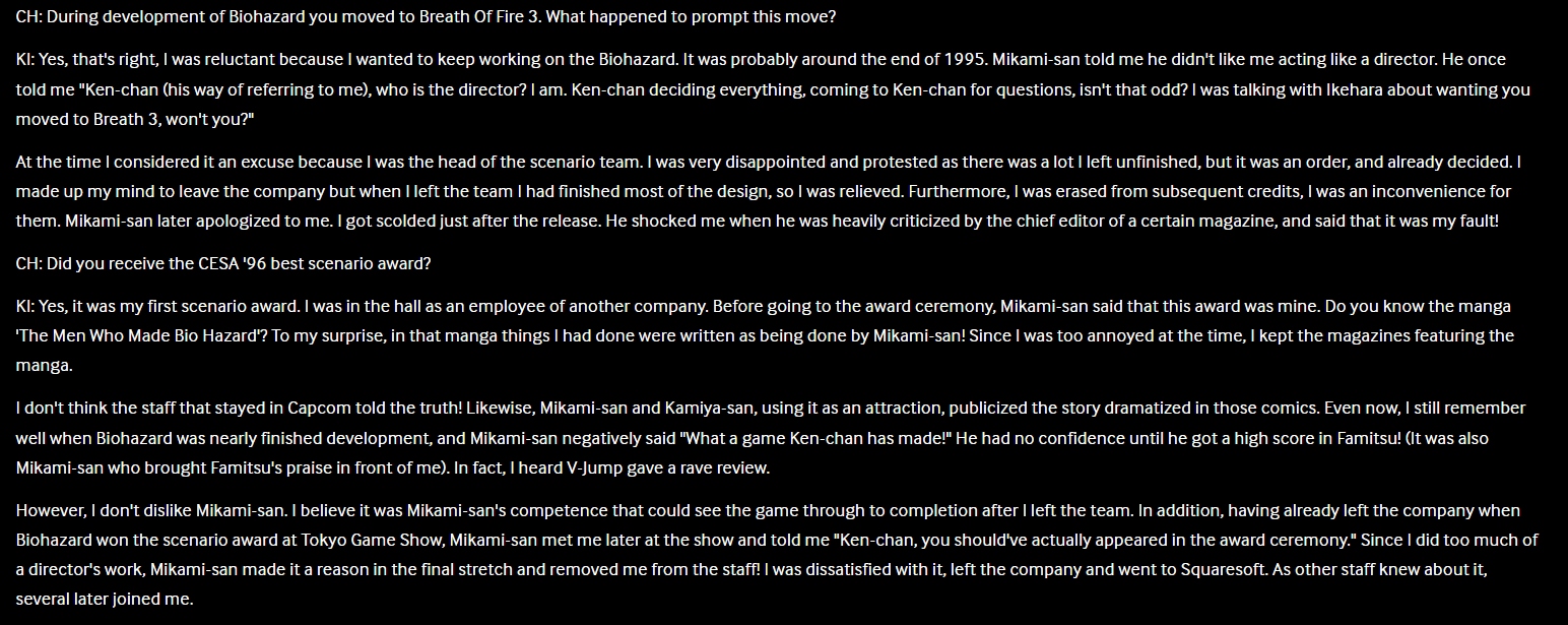 And Mikami was not the game's actual director and instead was pretty much running the project into the ground, as most staff went to Iwao or Fujiwara during development rather than him.
